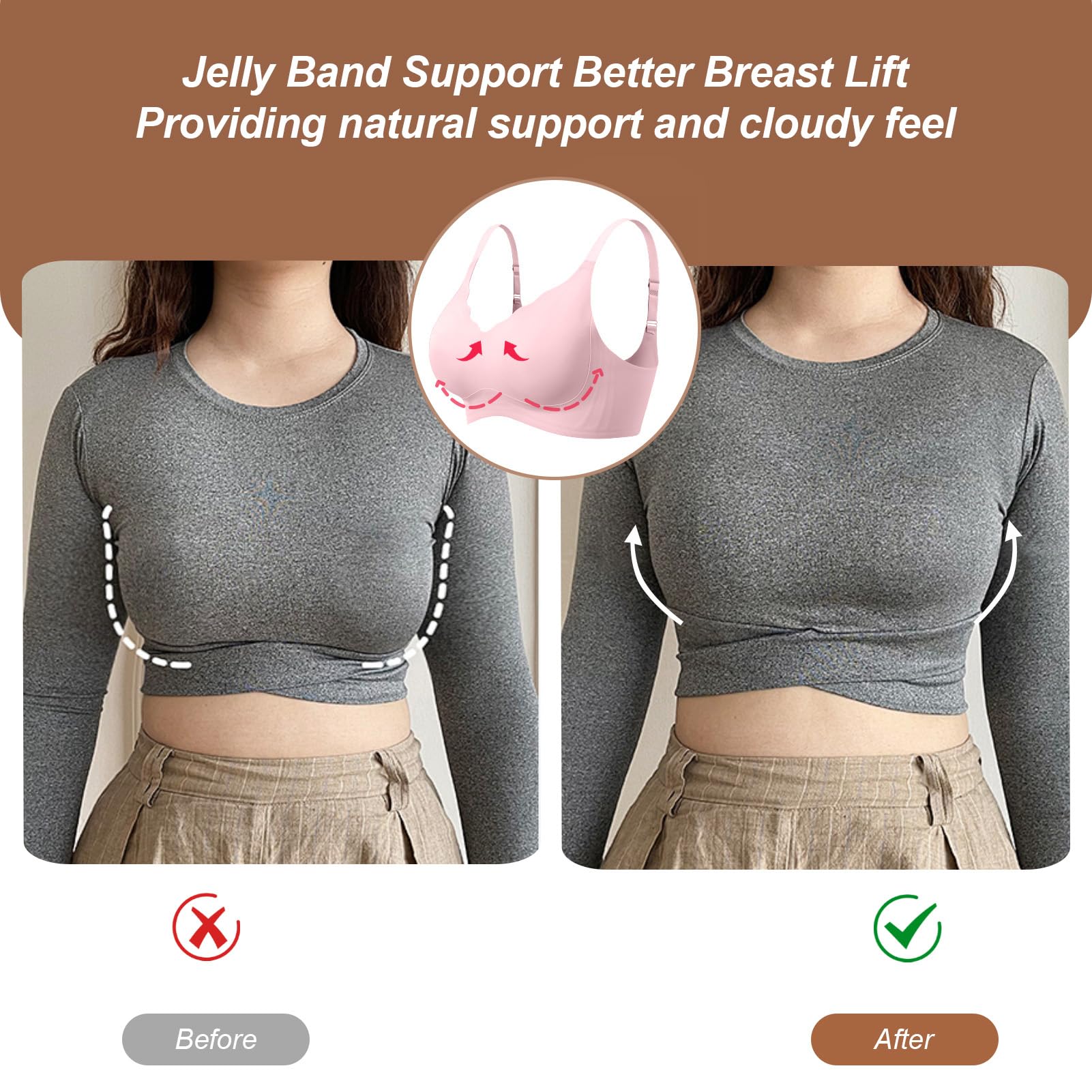 Soft Supportive bras with Jelly Band - OEAK Push Up bras feature a bigger hugging “W” shape and innovative 3D support technology formed by the liquid jelly band provides 360°round support for your breasts, creating a fully and natural-looking chest without the discomfort of a traditional underwire bra. The wireless bra with removable pads adds to the comfort level, ensuring a buttery soft feeling, and maximum comfort all day long.
