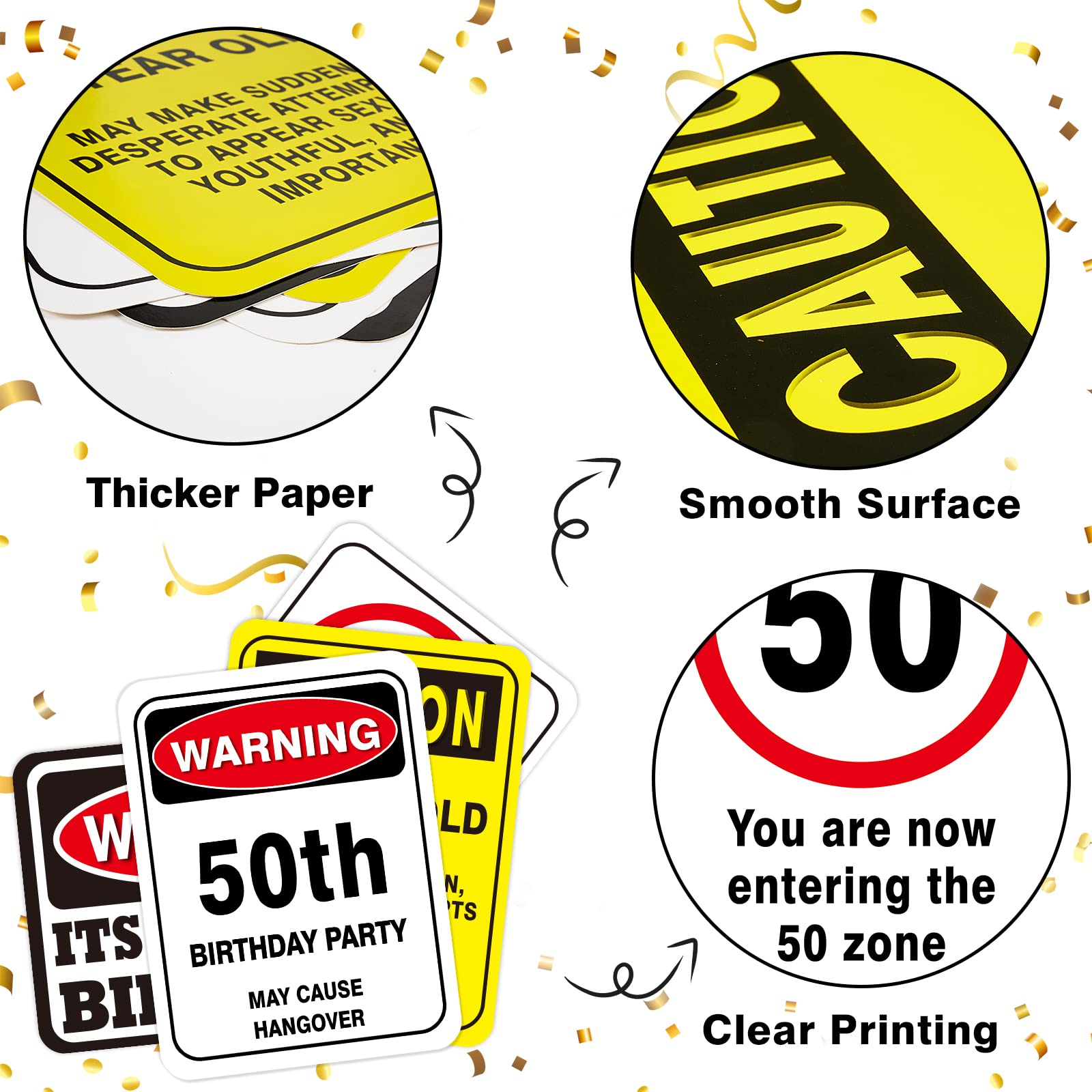 PACKAGE - 9 PCS dirty 50 birthday party supplies. All logos measure 11.8" X 8.8". Total 9 patterns: WARNING: 50th birthday party, CAUTION: 50 YEARS OLD, 50 ZONE ENDS, You are now entering the 50 zone and more. 50th banner red for men 50 birthday decorations for men 50th birthday gag gifts for men funny