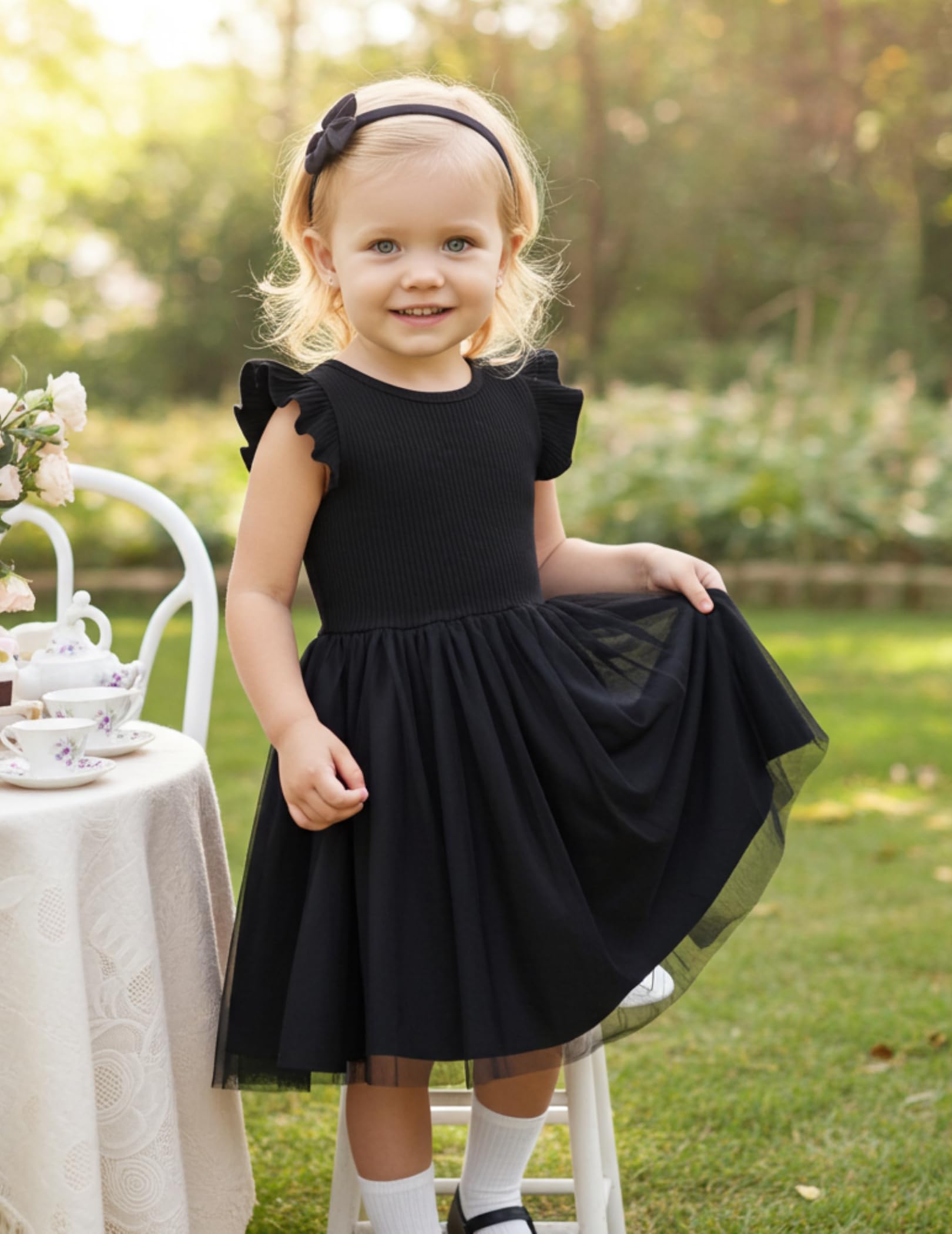 Comfy Fabric: Toddler girls tutu dress is made of cotton 93% & spandex 7%, flowy and breathable rib-knit and mesh fabric. Lightweight but not see through, combined with sleeveless design, bring your princess a cool and comfortable wearing experience