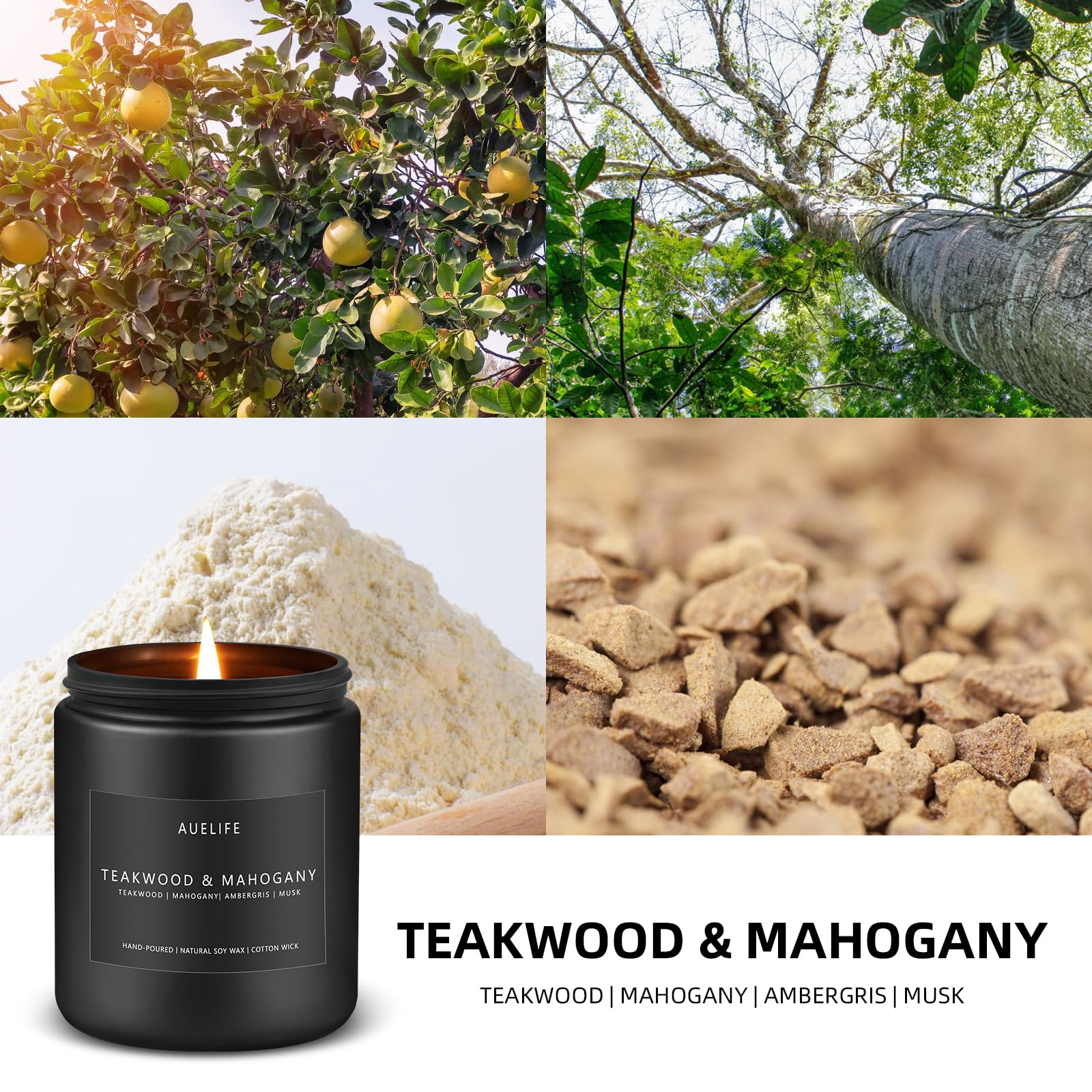 An Aura of Refined Elegance : The Teakwood & Mahogany Candle boasts a deep, robust scent profile that combines the earthy richness of teakwood with the refined warmth of mahogany. Accented with subtle hints of amber and spices, this blend creates a sophisticated aroma that envelops your space in a cozy, inviting ambiance