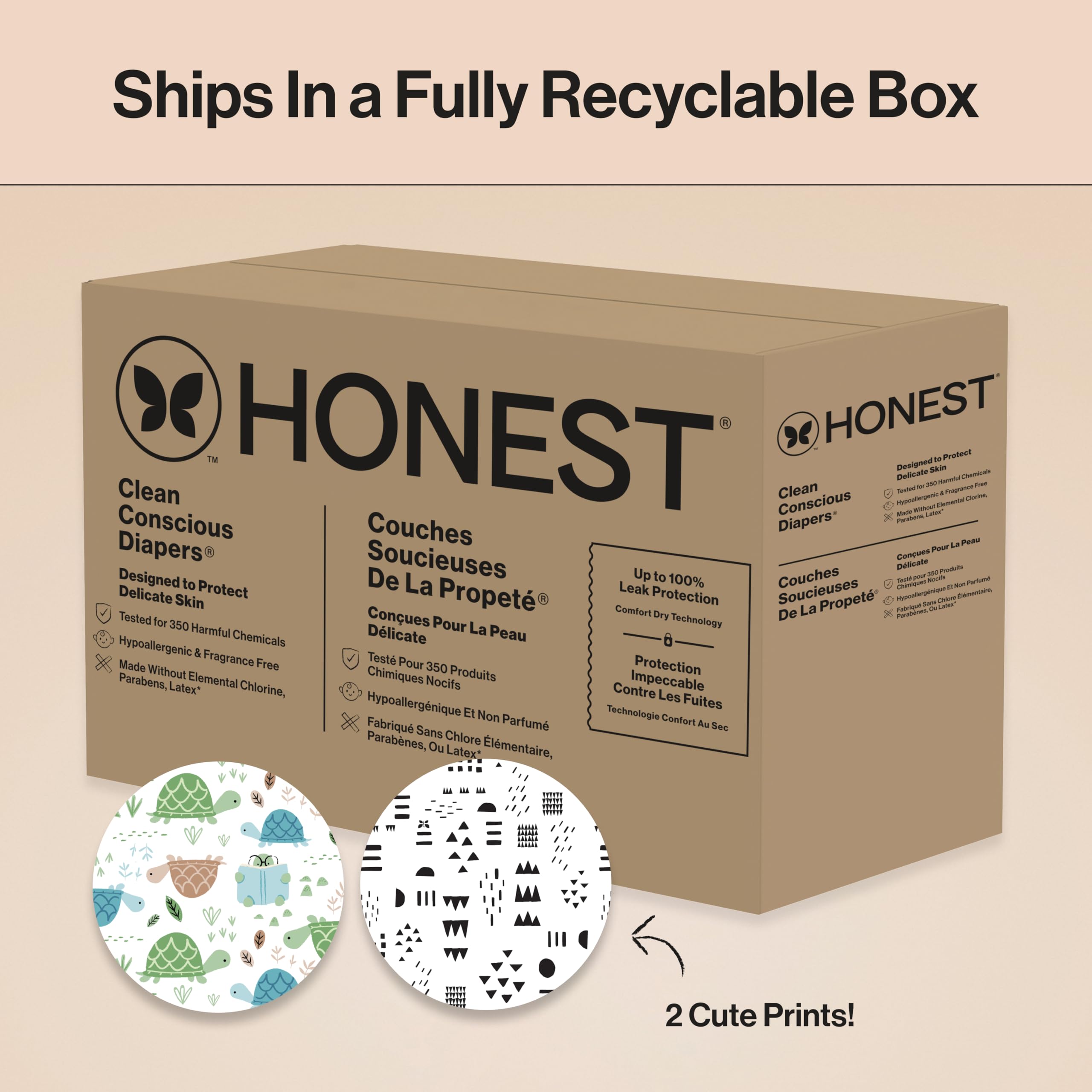 Designed to protect delicate skin, Honest Clean Conscious Diapers keep baby comfortable and dry through all the wiggles and wobbles! Our softest diaper yet delivers up to 100% leak protection with Comfort Dry Technology. The hypoallergenic, plant based inner liner, flexible stretch wings, super absorbent core, and channel technology provide a comfy, secure fit for all ages and stages. Because safety is top priority, these diapers are OEKO-TEX STANDARD 100 Certified, a 3rd party that tests for 350 harmful chemicals, and made with FSC Certified Fluff Pulp and other controlled materials. And for cuteness overload, each diaper features a super cute print!