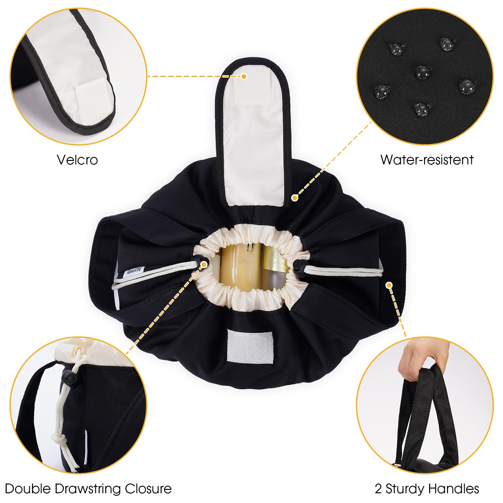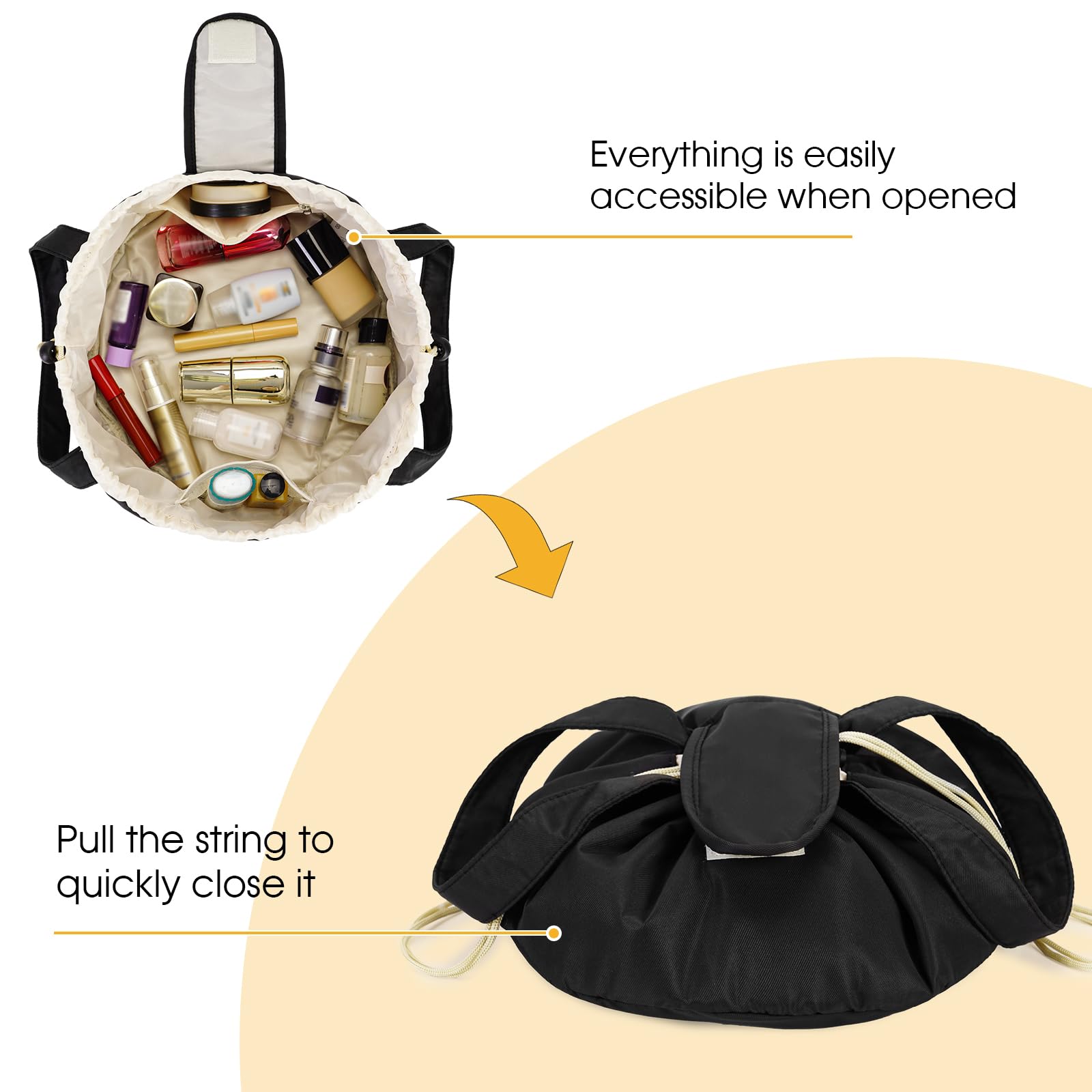 Easily Accessible. Everything is easily accessible when opened. Inner zippered pocket and mesh pocket offer quick access to frequent uses items. Just keep all your makeup in one bag and find everything without rummaging around