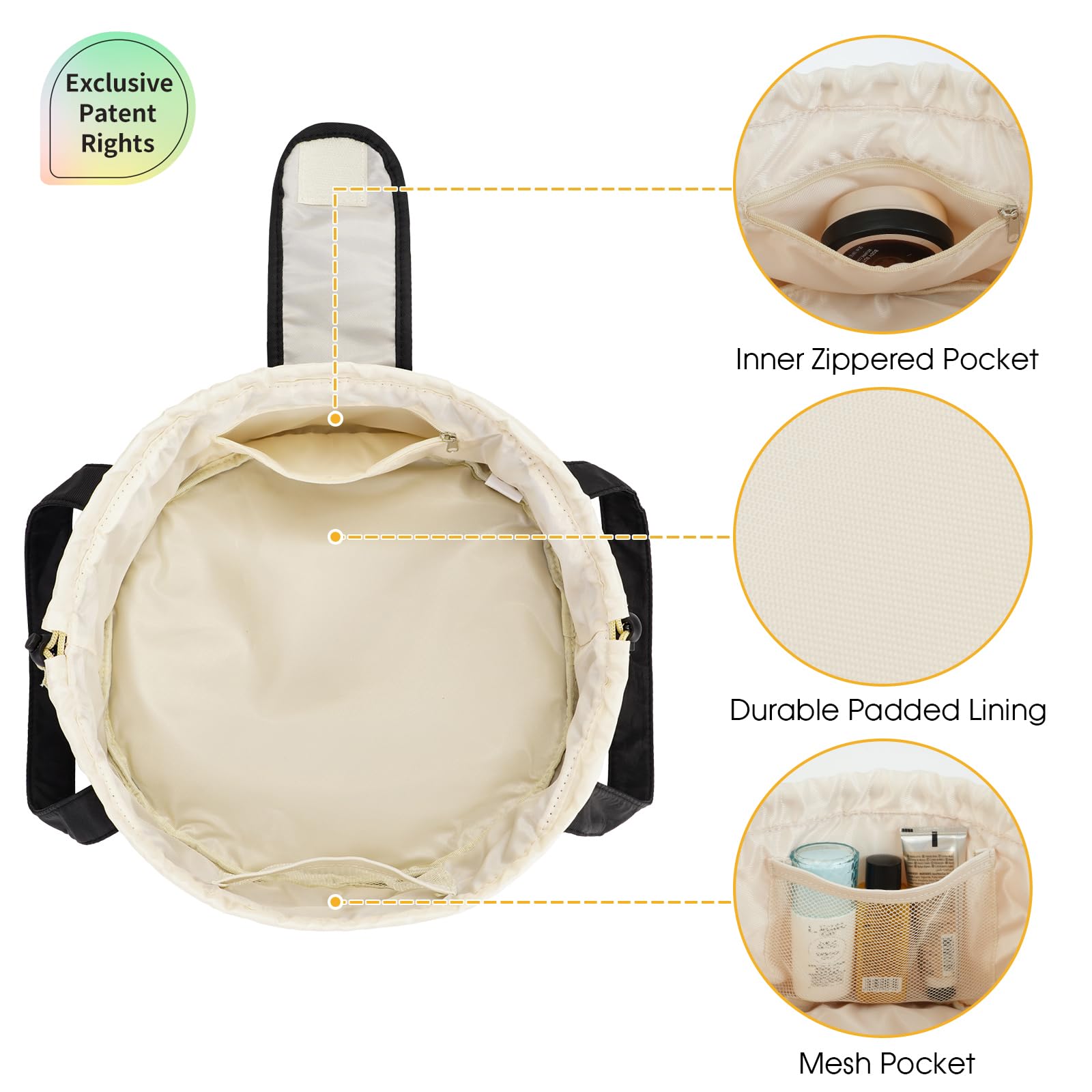 Convenient Design. Front flap velcro closure and double drawstrings make it easy to close quickly and firmly. Barrel-like construction protect items from sliding out when packing. 2 Sturdy handles are convenient to carry