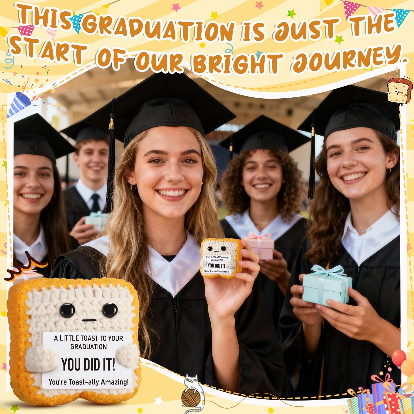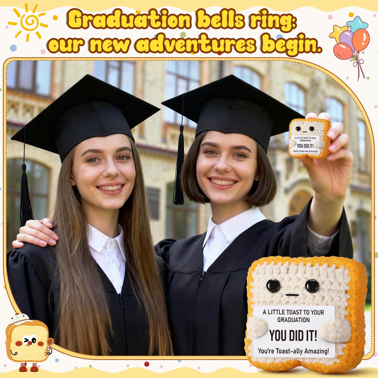 Motivational & Fun Design – Featuring the uplifting message, "You Did It! You’re Toast-ally Amazing!", this plush brings joy, encouragement, and a little humor to their special day.