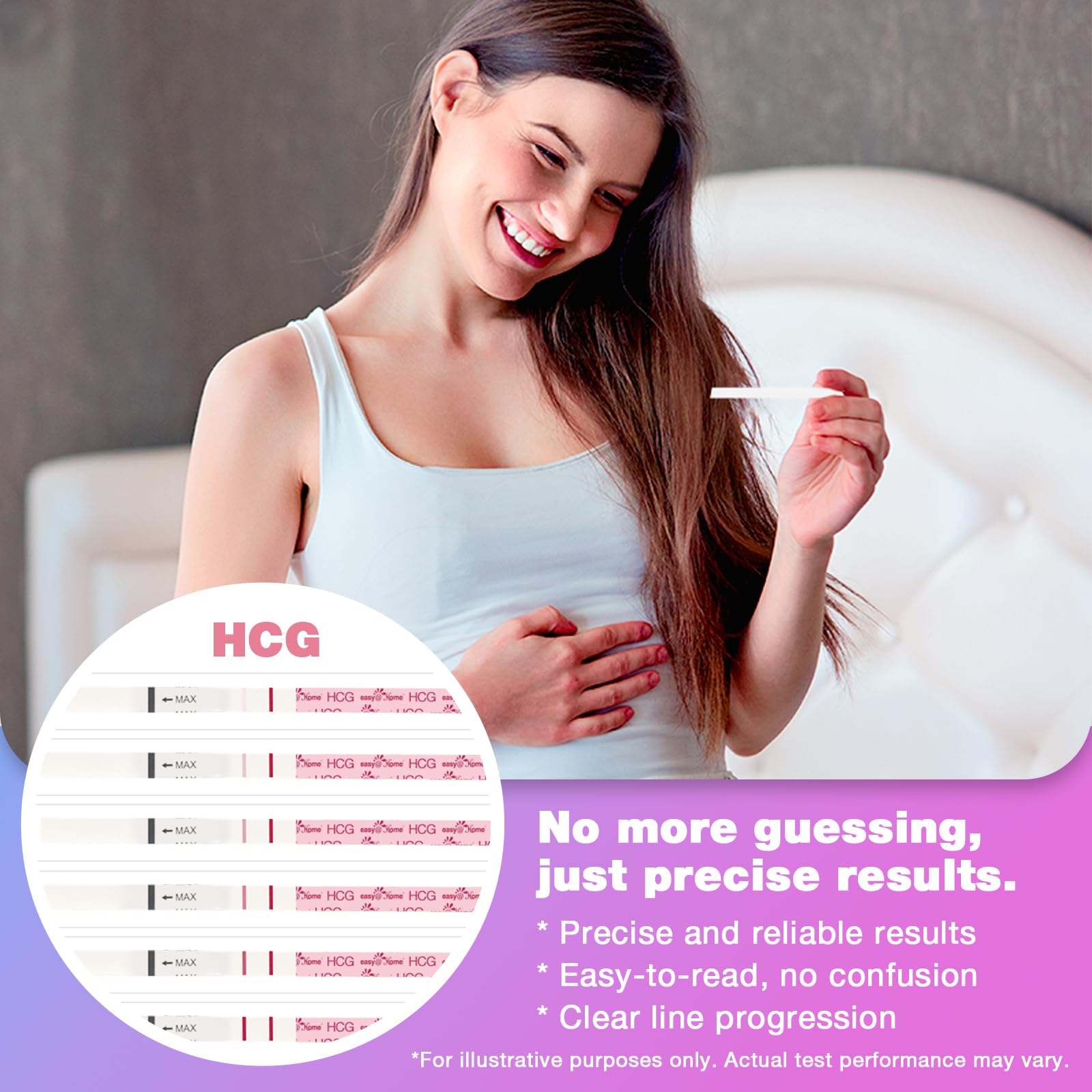 The ovulation test strips help to track your ovulation progression, and minimize the chances of missing your LH surge. Levels of hCG as low as 25 mIU/mL can be detected in 5 minutes