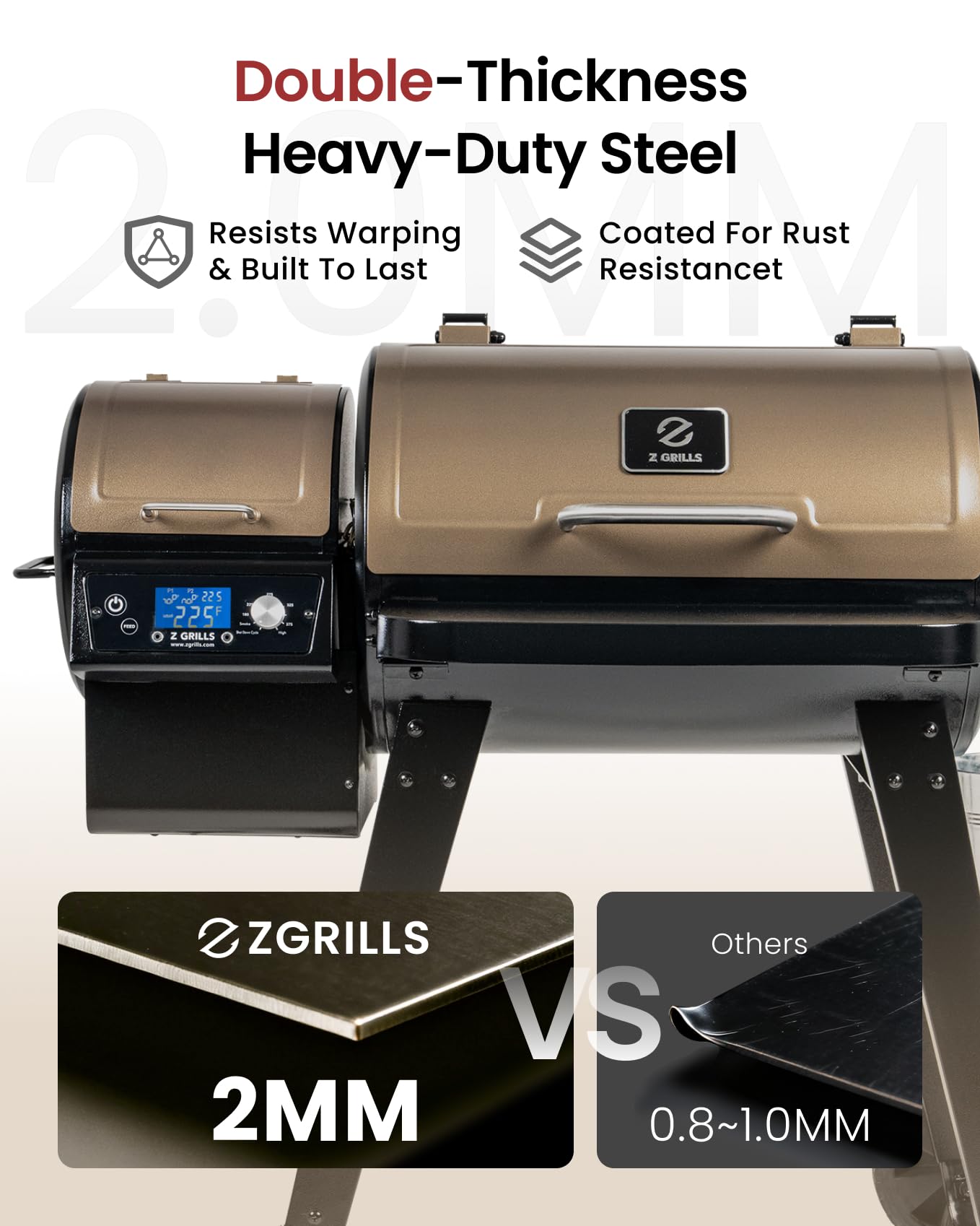 Durable & Portable-- Sturdy steel construction with a high-temperature powder coating finish makes the pellet grill long-lasting. Lift the left side to roll smoothly on the right wheels, then lower the left legs to lock securely in place.