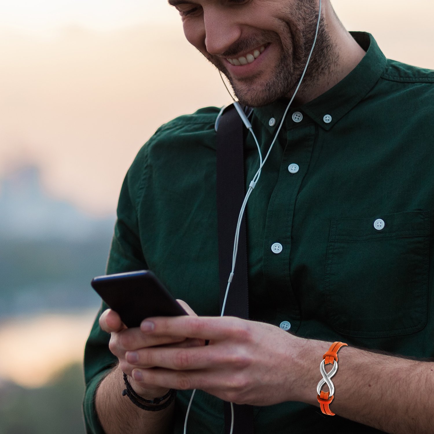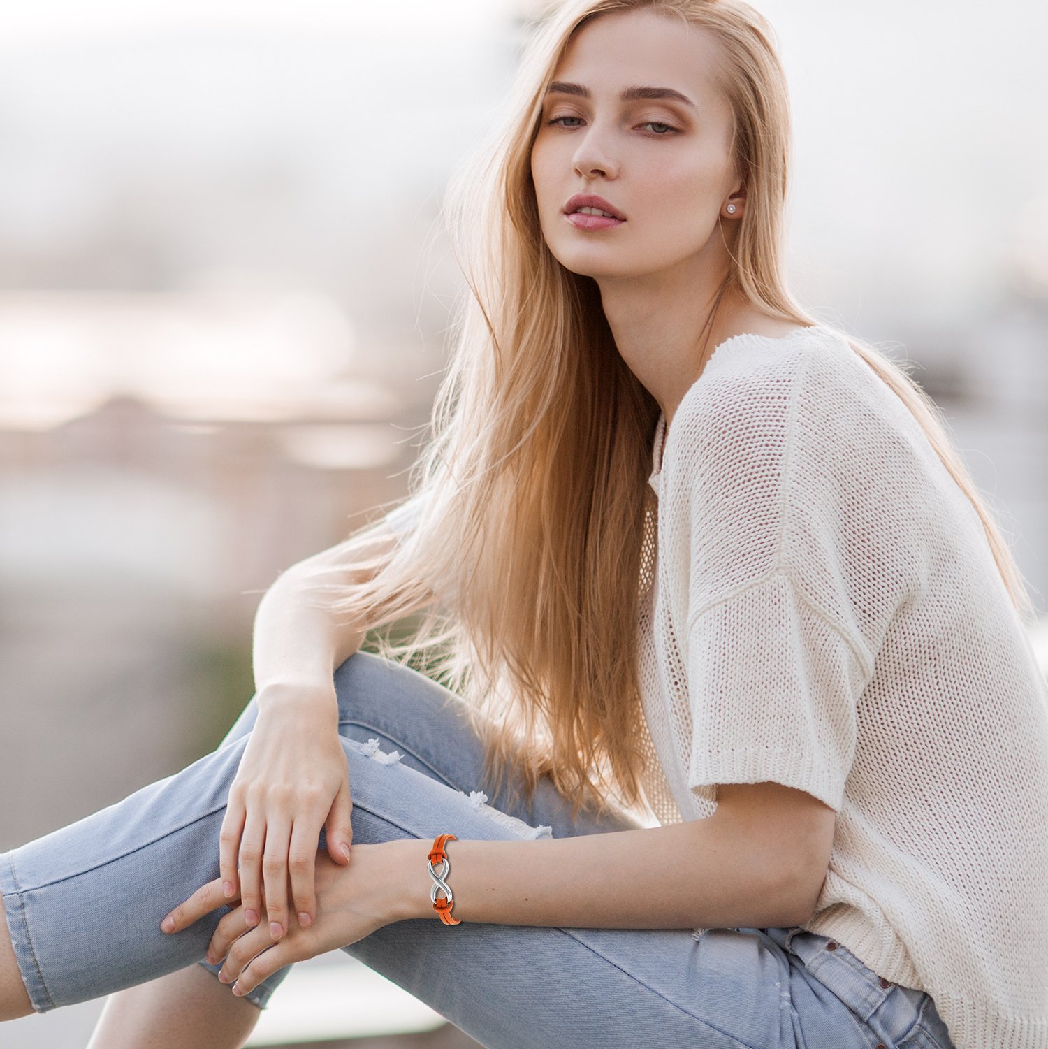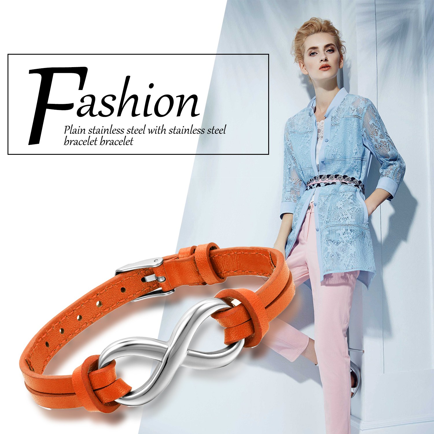 Material:hypoallergenic stainless steel + Leather
