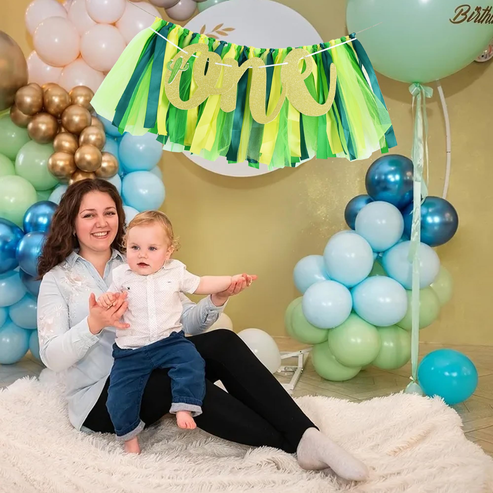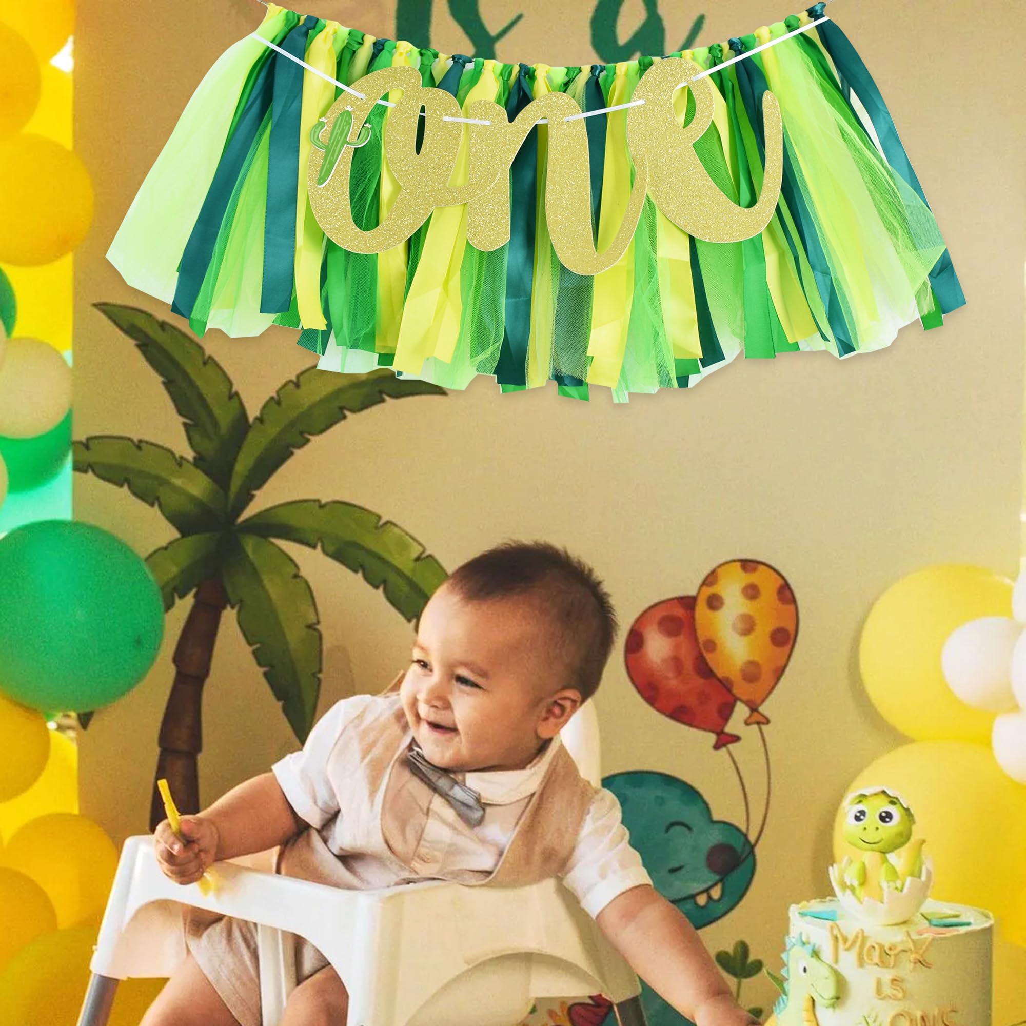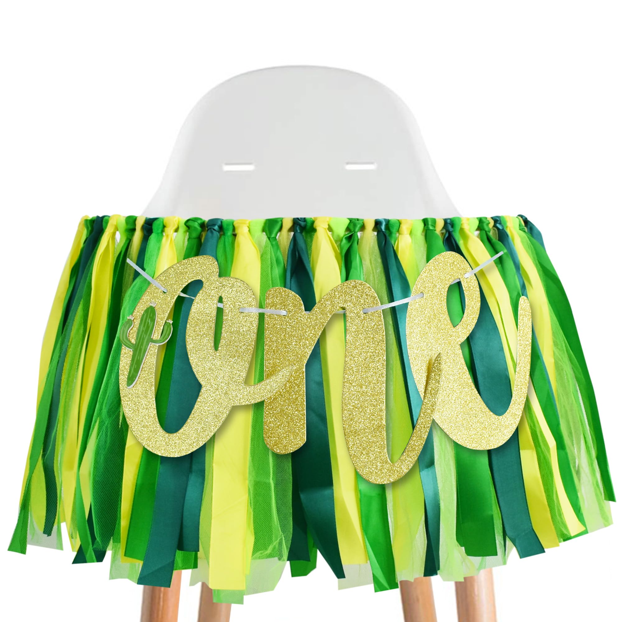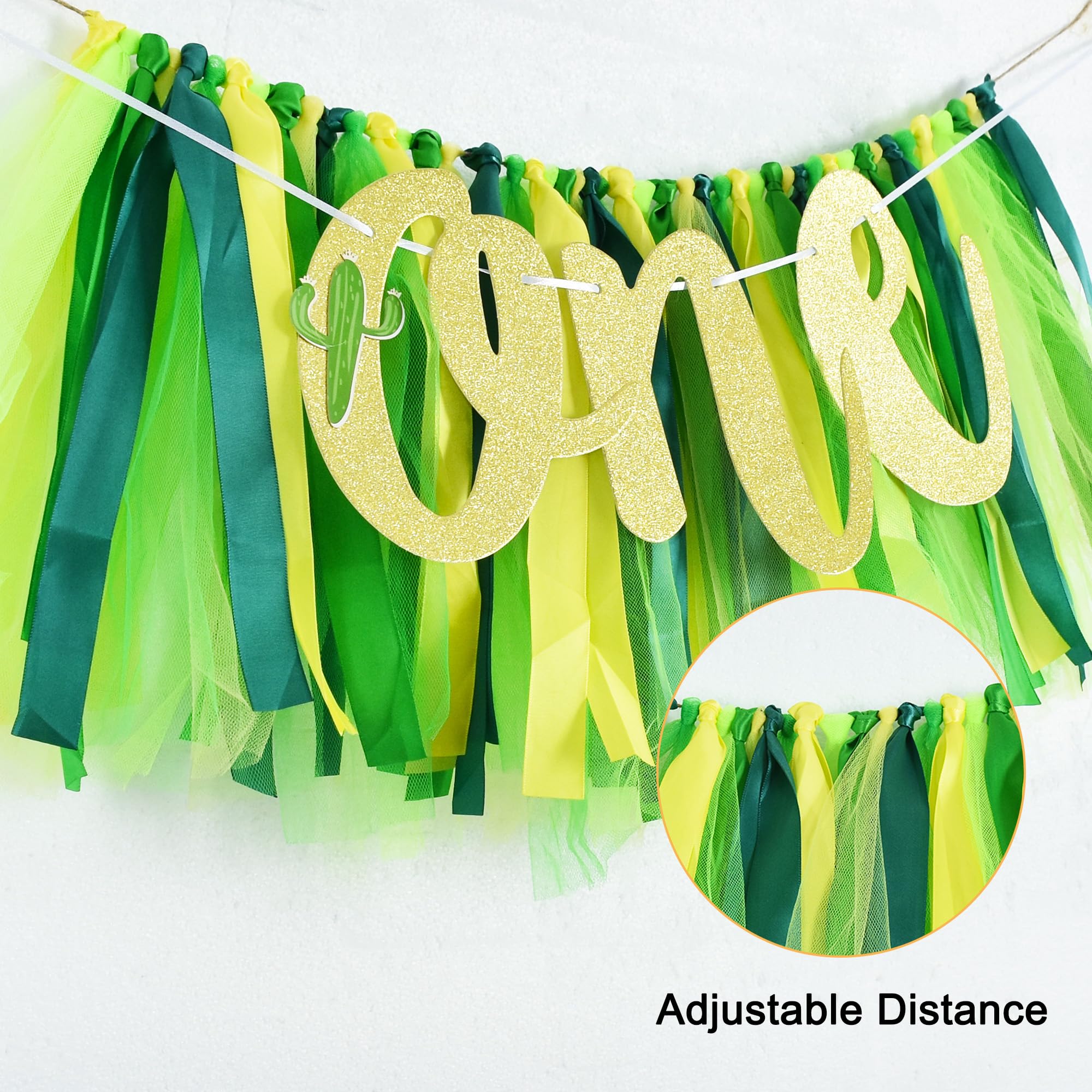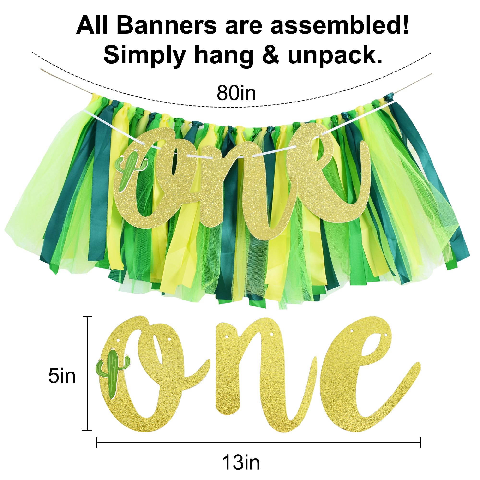 Party Banner for Your Kids - This colorful birthday theme banner is made of beautiful colored tulle and ribbon, like a rainbow, and is equipped with gold flash cards and cacti design, which can be used to decorate the high chair of the kid's first birthday party.
