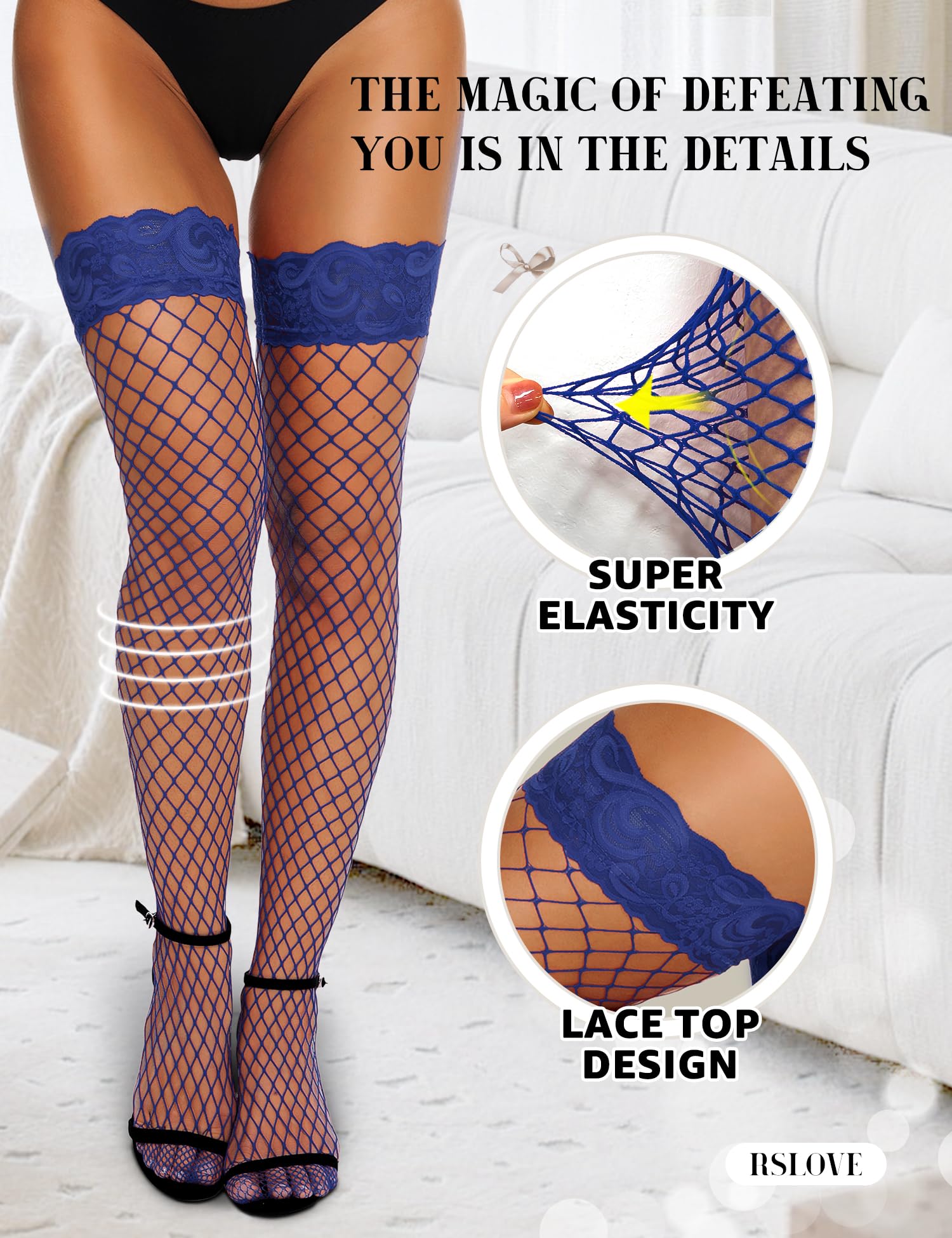 Durable: Experience durability at its finest with our RSLOVE laced stay-up fishnet thigh highs, designed to stretch and accommodate various body types while providing all-day comfort. Elevate any outfit or occasion with these special stockings that add a unique flair.
