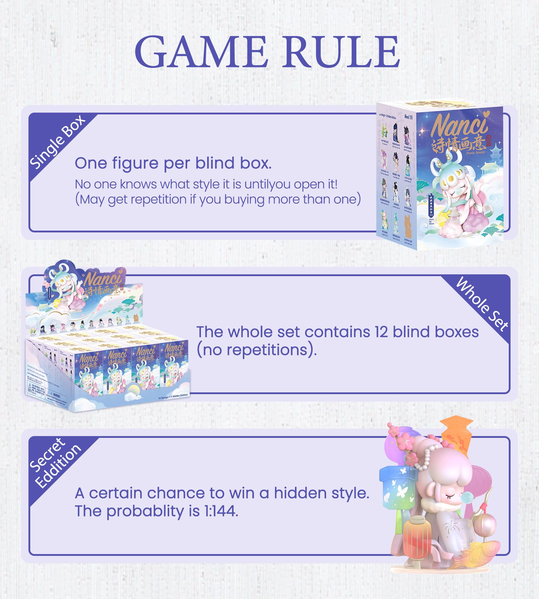 【ROBOTIME Nanci Blind Box】This Poetic Charm series includes 12 different figures and 1 SECRET EDITION figures (Endless Search). Each blind box contains a character card.