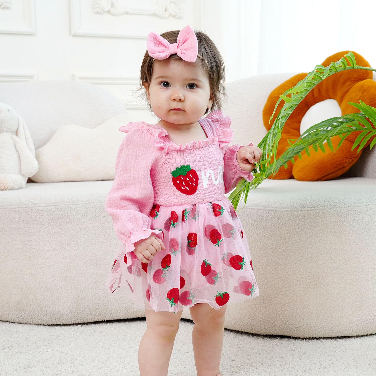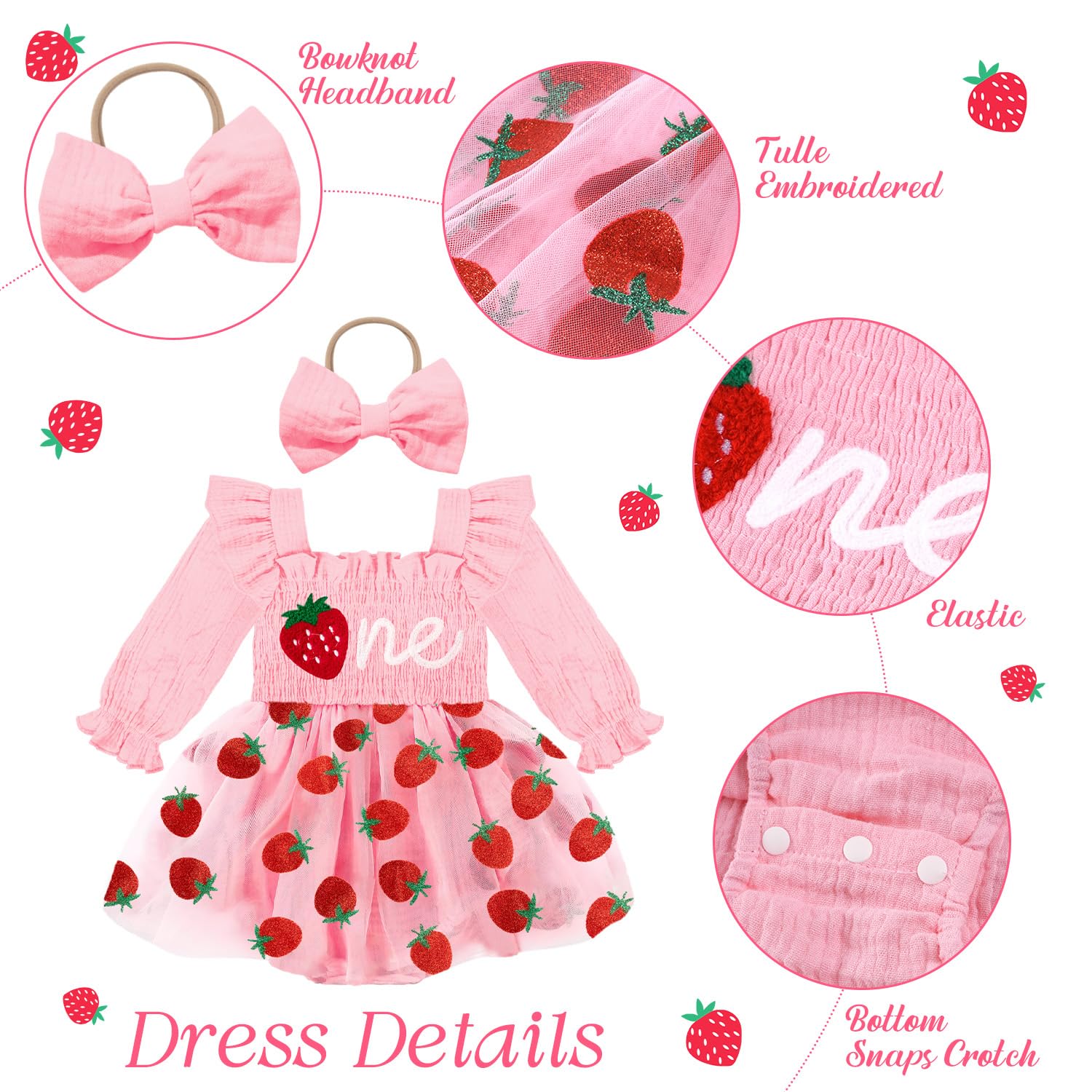 【Adorable Design】Our 1 year old girl gifts is exquisitely designed and adorable, with a square neckline and embroidered "one" pattern on the chest to highlight its uniqueness. The baby qirl dresses is made of delicate embroidered mesh, which not only allows for breath but also adds elegance, making your girl sweeter and more charming