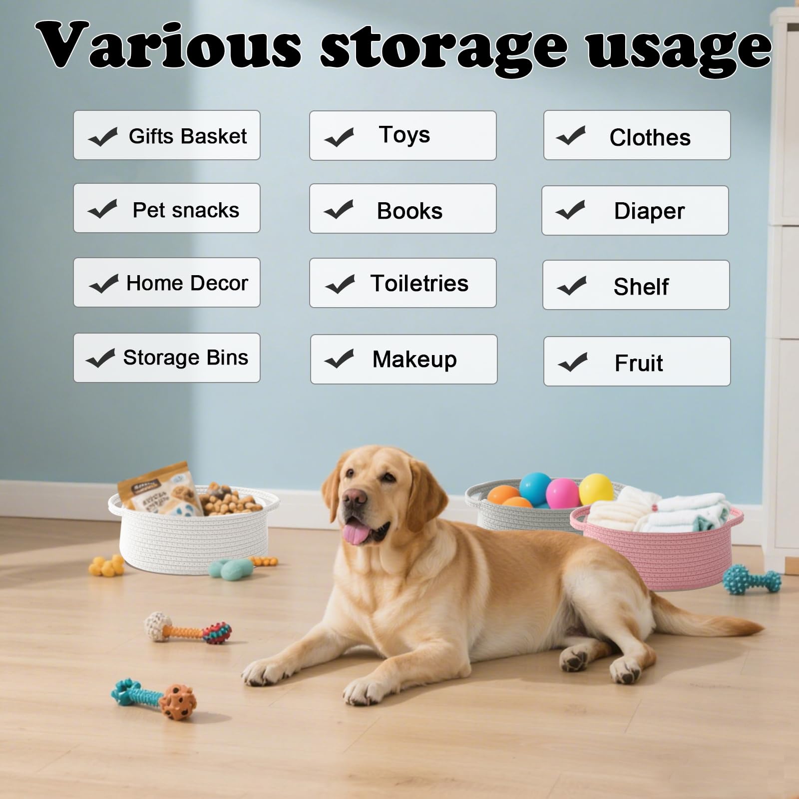 【Multi-Purpose Storage】Woven baskets for storage,bathroom organization, shelf styling,storage basket for organizing snacks, dog cat, magazine, shoes, remotes, books, towels, toiletries, keys and more.Widely used in living room,bedrooms,bathrooms,kids room,and Kitchen
