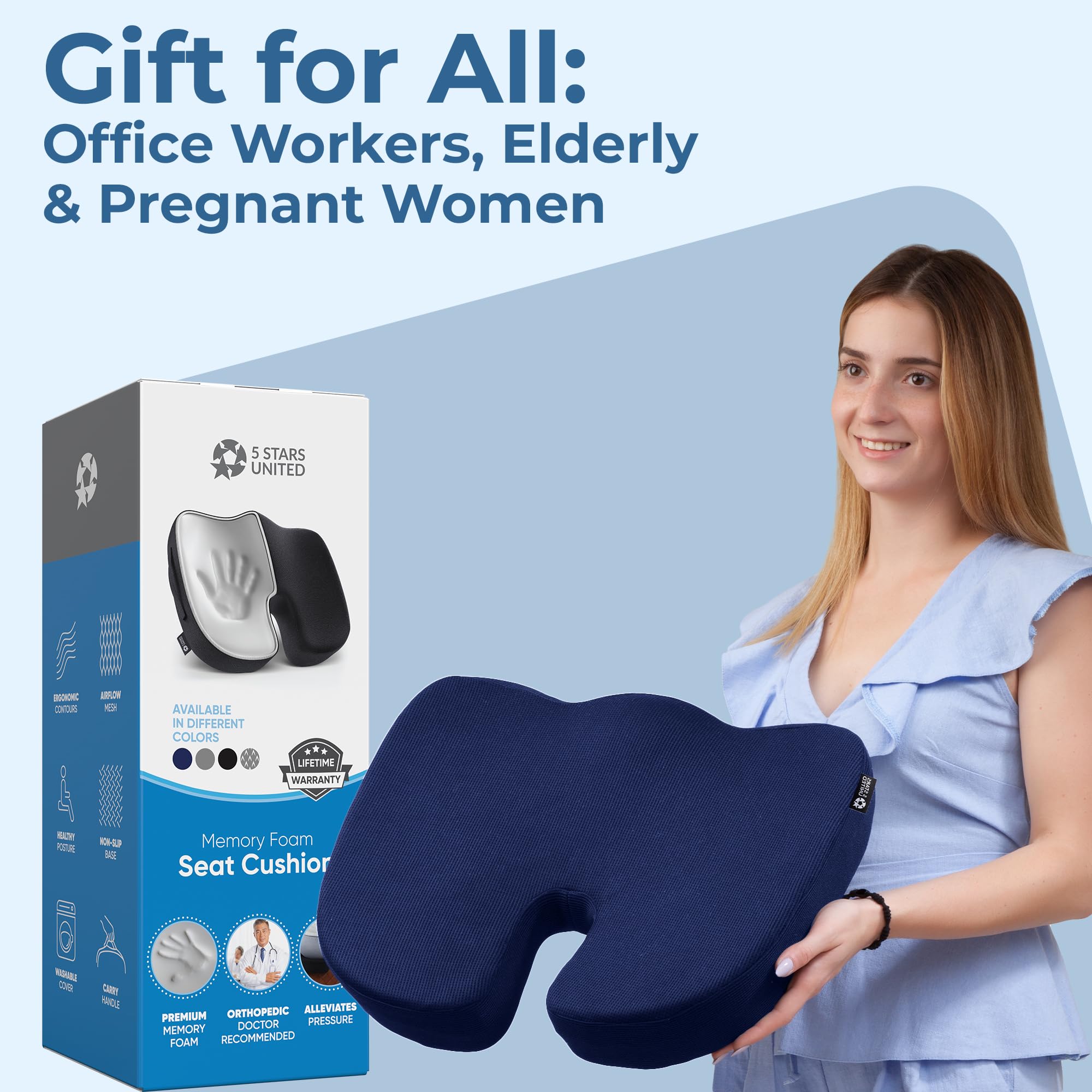 𝗙𝗶𝗿𝗺 & 𝗦𝘂𝗽𝗽𝗼𝗿𝘁𝗶𝘃𝗲: The orthopedic seat cushion should be firm enough. Our office chair cushion is a perfect mix of firmness and comfort. However, please allow yourself 1-3 weeks to adapt to a new feeling while sitting. Stay healthy with 5 Stars United sciatica pillow for sitting
