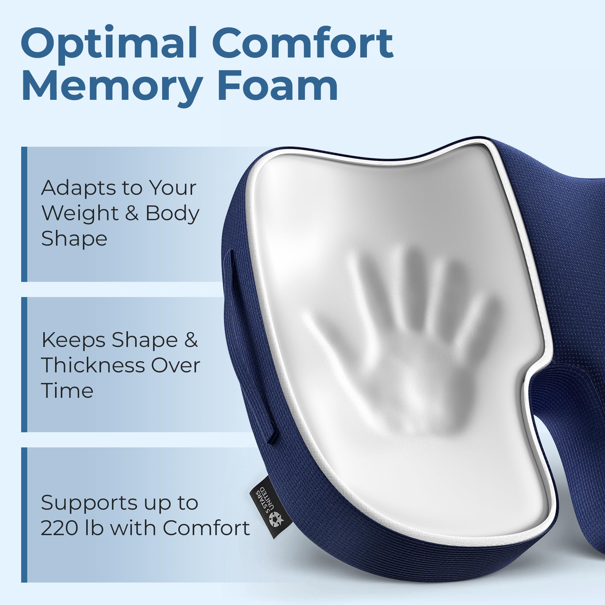 𝗪𝗼𝗿𝗸𝘀 𝘄𝗶𝘁𝗵 𝗔𝗻𝘆 𝗖𝗵𝗮𝗶𝗿 - This ergonomic seat cushion nicely fits most office chairs and school chairs. U-shaped contoured design rests your tailbone, avoiding compression. This pillow is also a good option to consider, if you move around a lot. Take it in your car, on a plane or a train. Great for office use, frequent travelers, sporting events. This cushion will help to reduce neck, shoulder, and low back pain. Perfect alternative to donut and hemorrhoid pillows. Best for Adults 150 - 220 lbs