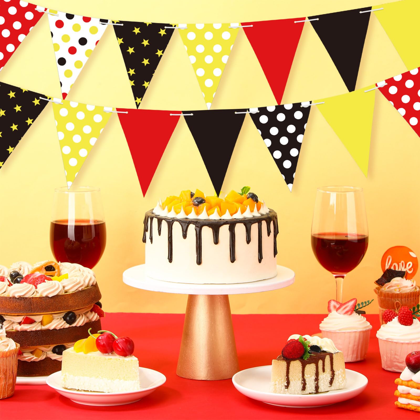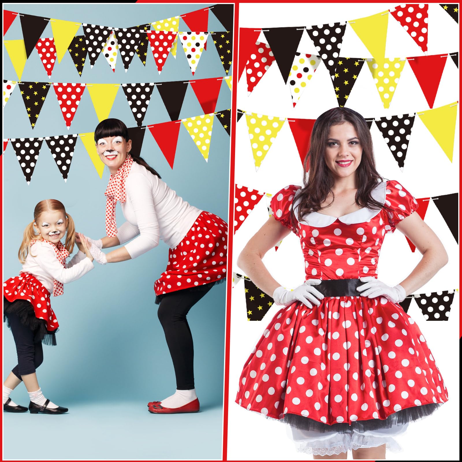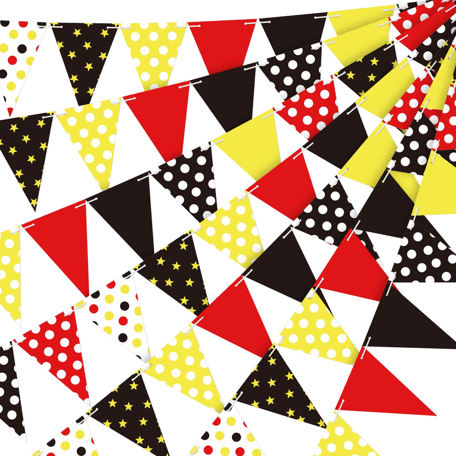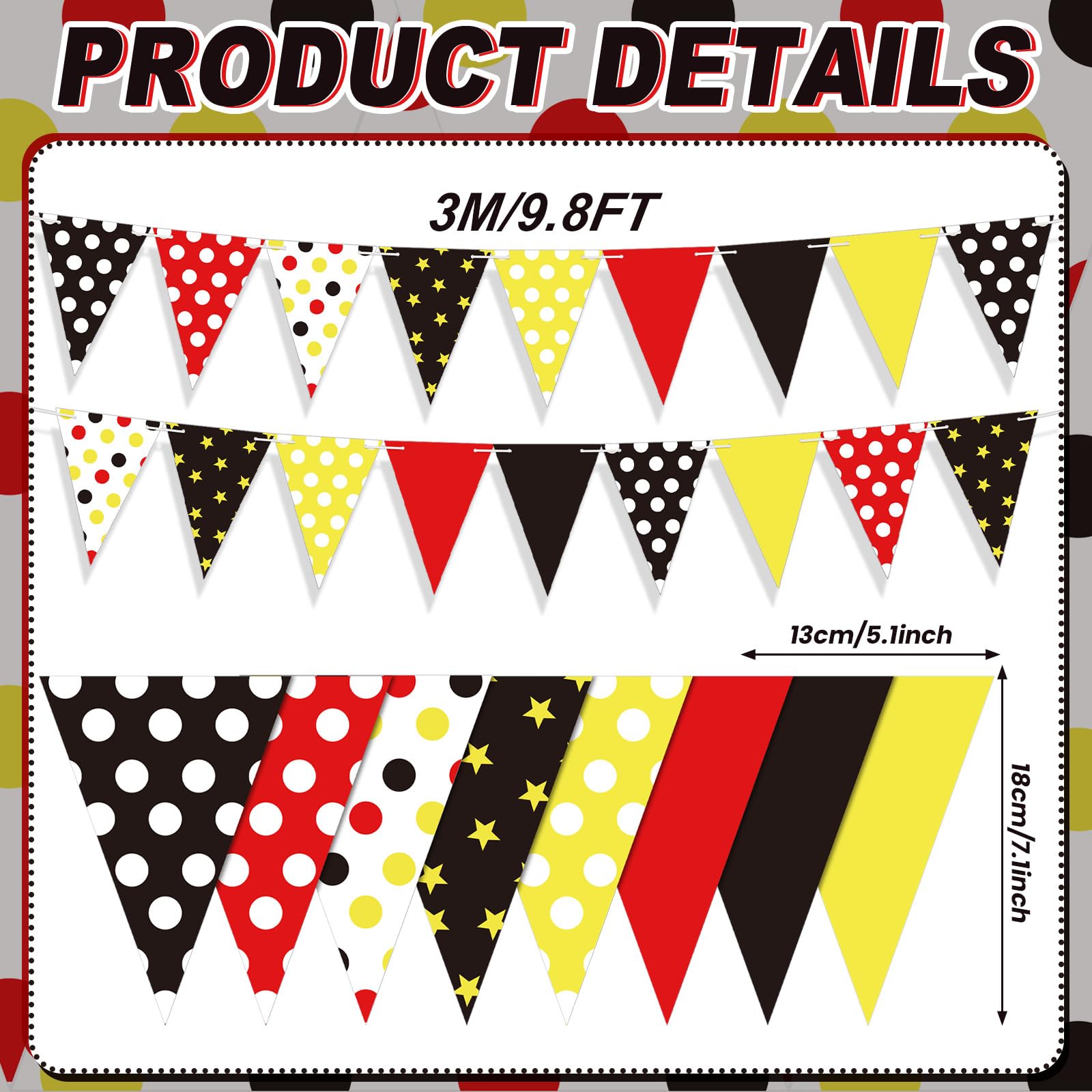 Mouse Themed Design: our flags are designed with a mouse theme, with red polka dots, white polka dots, yellow polka dots, yellow stars, as well as yellow, black and other color combinations; The bright colors are very attractive, whether for party needs or other activities; Are very applicable