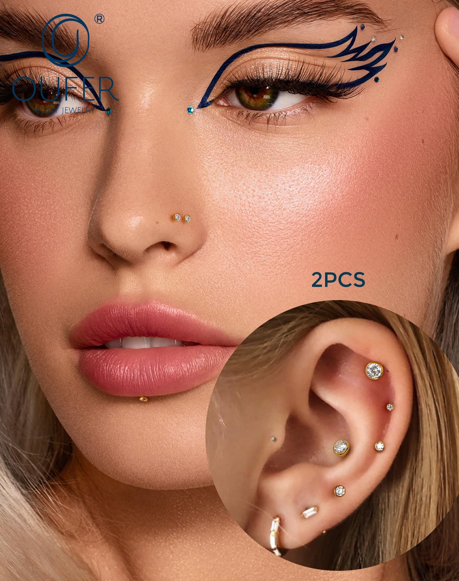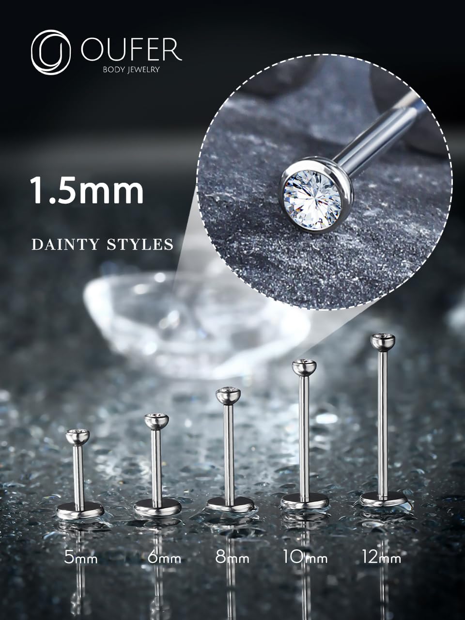 【1.5MM CZ – Minimal Sparkle】:Delivers a subtle shine with a 1.5mm cubic zirconia, perfect for understated or stacked piercings.