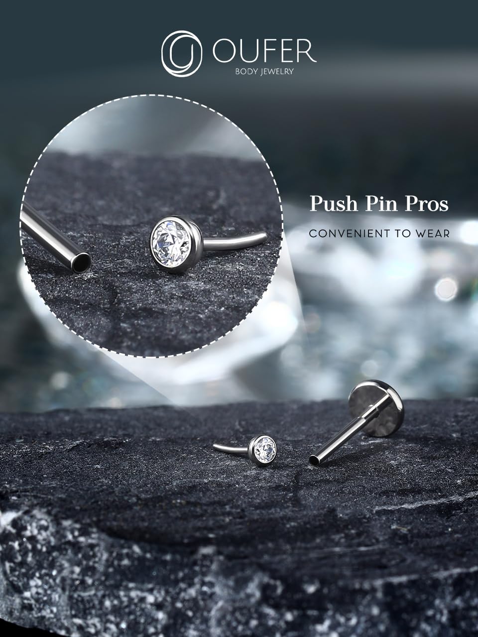 【Threadless Push-In with Flat Back】:Tool-free threadless insert ensures secure placement, while the flat back disc provides irritation-free wear.