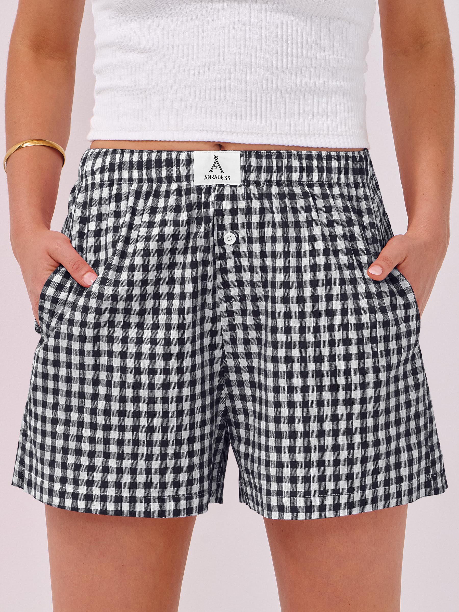 Washing - Machine wash cold gently with like colors. Do not bleach or iron. Red gingham shorts, red boxer shorts women, orange gingham shorts, blue boxer shorts women, black gingham shorts, pink gingham shorts, brown boxer shorts for women, black and white gingham shorts, red and white gingham shorts, blue striped shorts, black and white shorts