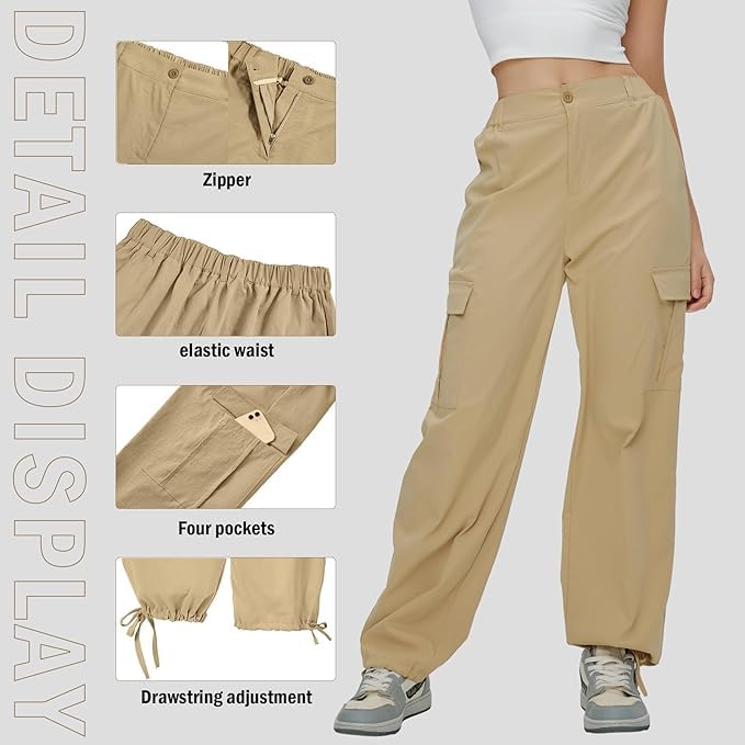 4 Multi Functional Pockets: Fashionable women's workwear pants,Includes 2 zippered side pockets (secure storage for phones/wallets), 1 cargo pocket (easy-access tools), and 1 back pocket (discreet storage),offering ample storage for phones, keys, and essentials. Perfect for outdoor adventures or daily use. Stay organized anywhere! It is a pair of women's trousers suitable for outdoor hiking or work, which provides convenience for you.