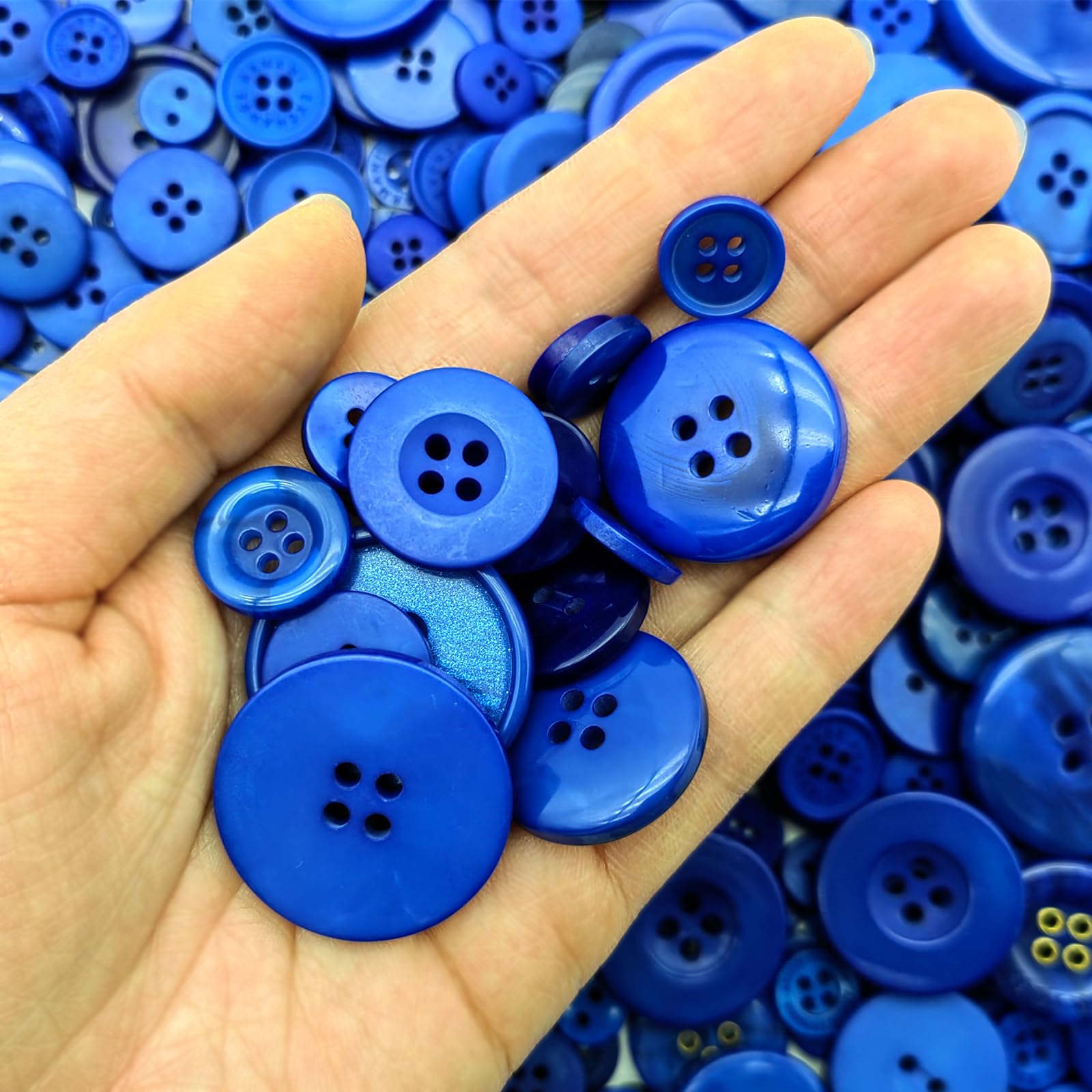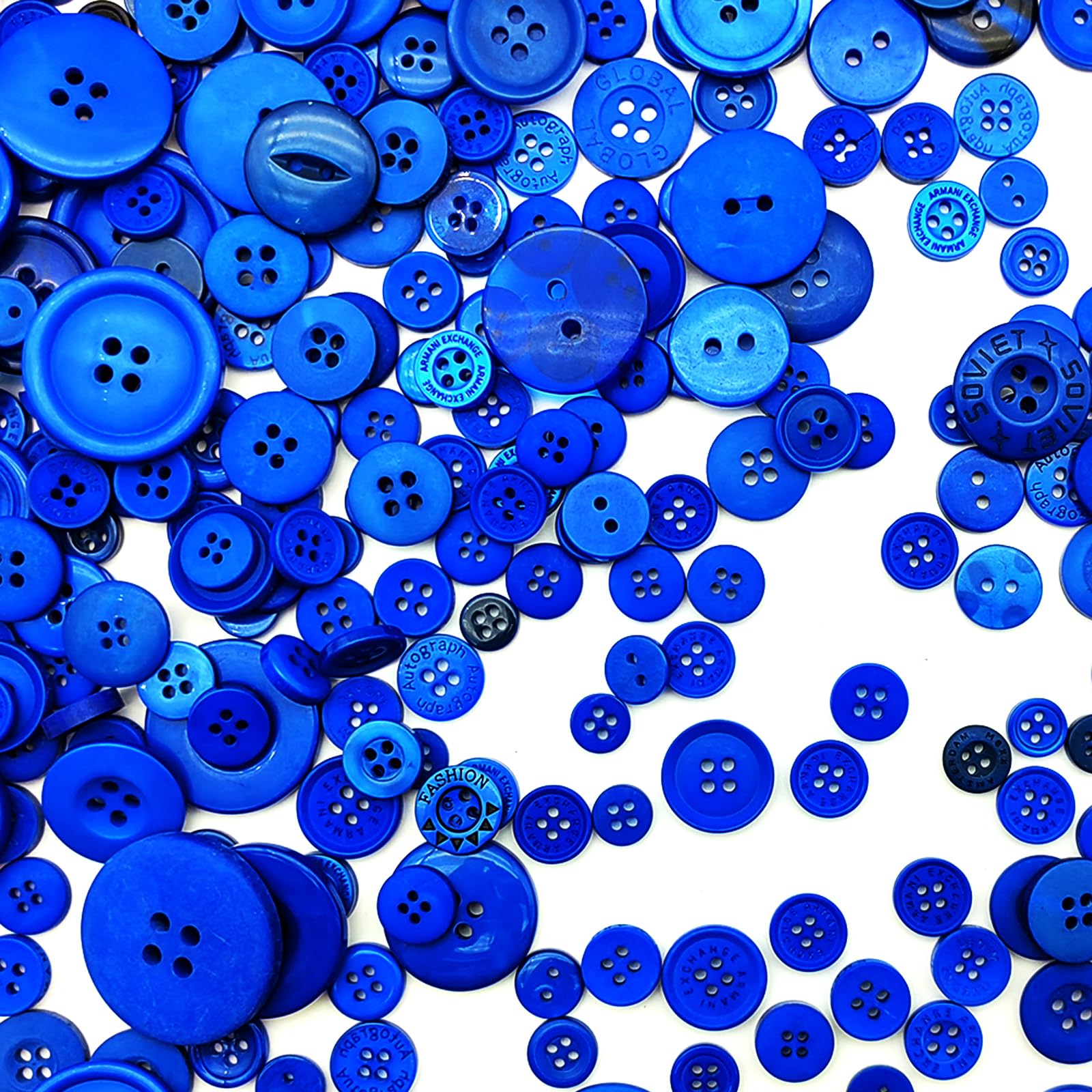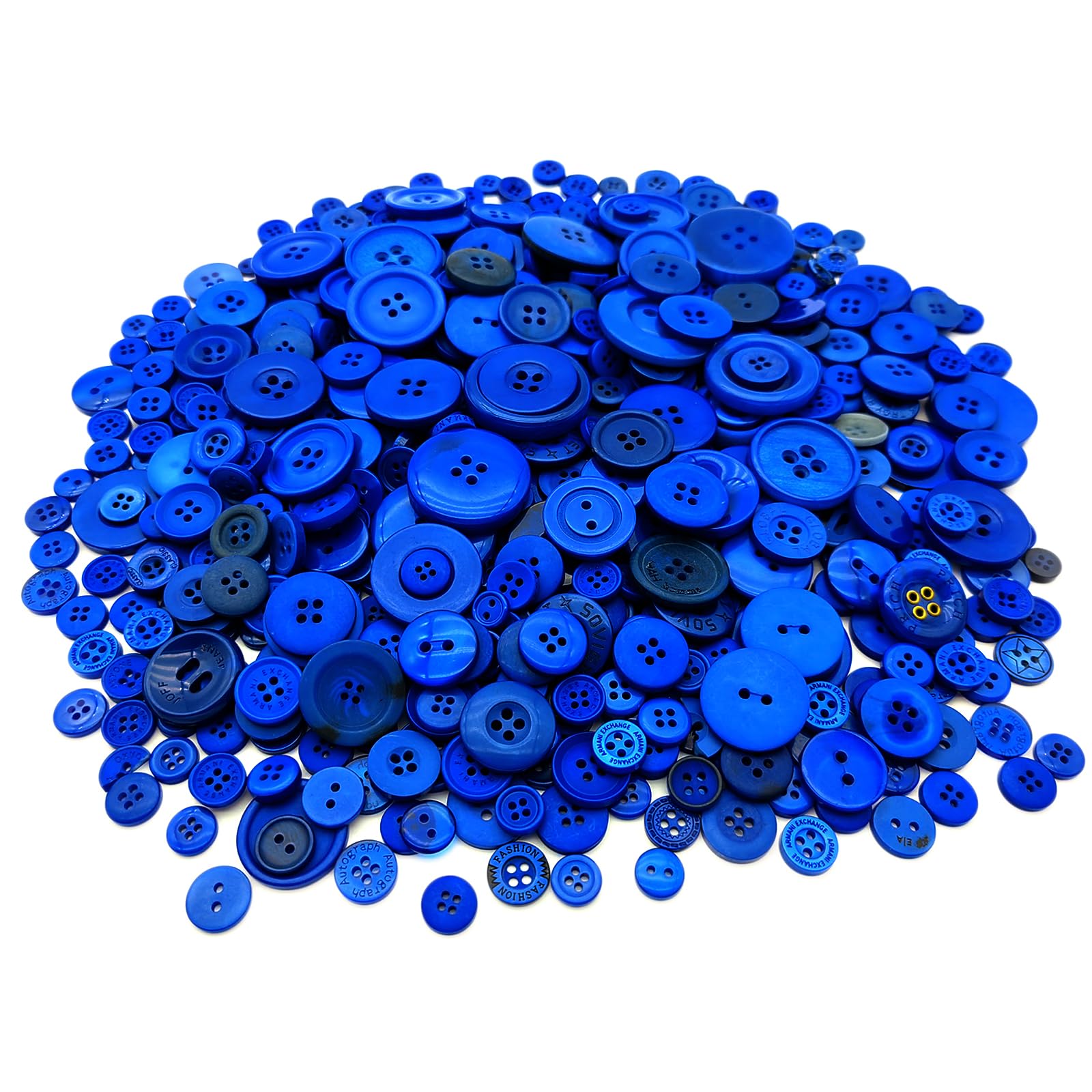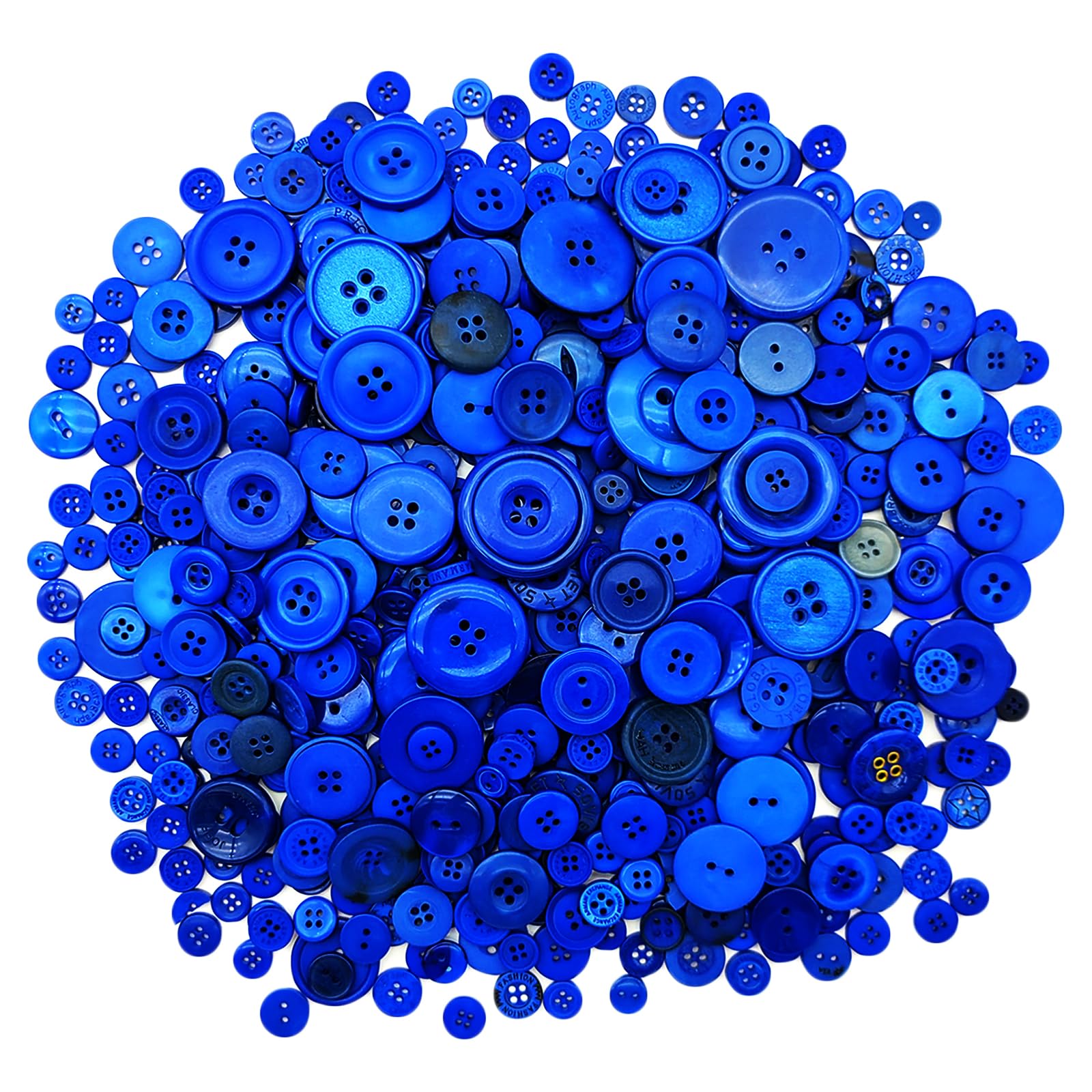 🐬 QUANTITY & WEIGHT: Blue craft buttons Approx. 650 pieces 2 and 4 holes resin buttons. There are a few variations in the number of buttons per pack, but the weight is generally 330g.