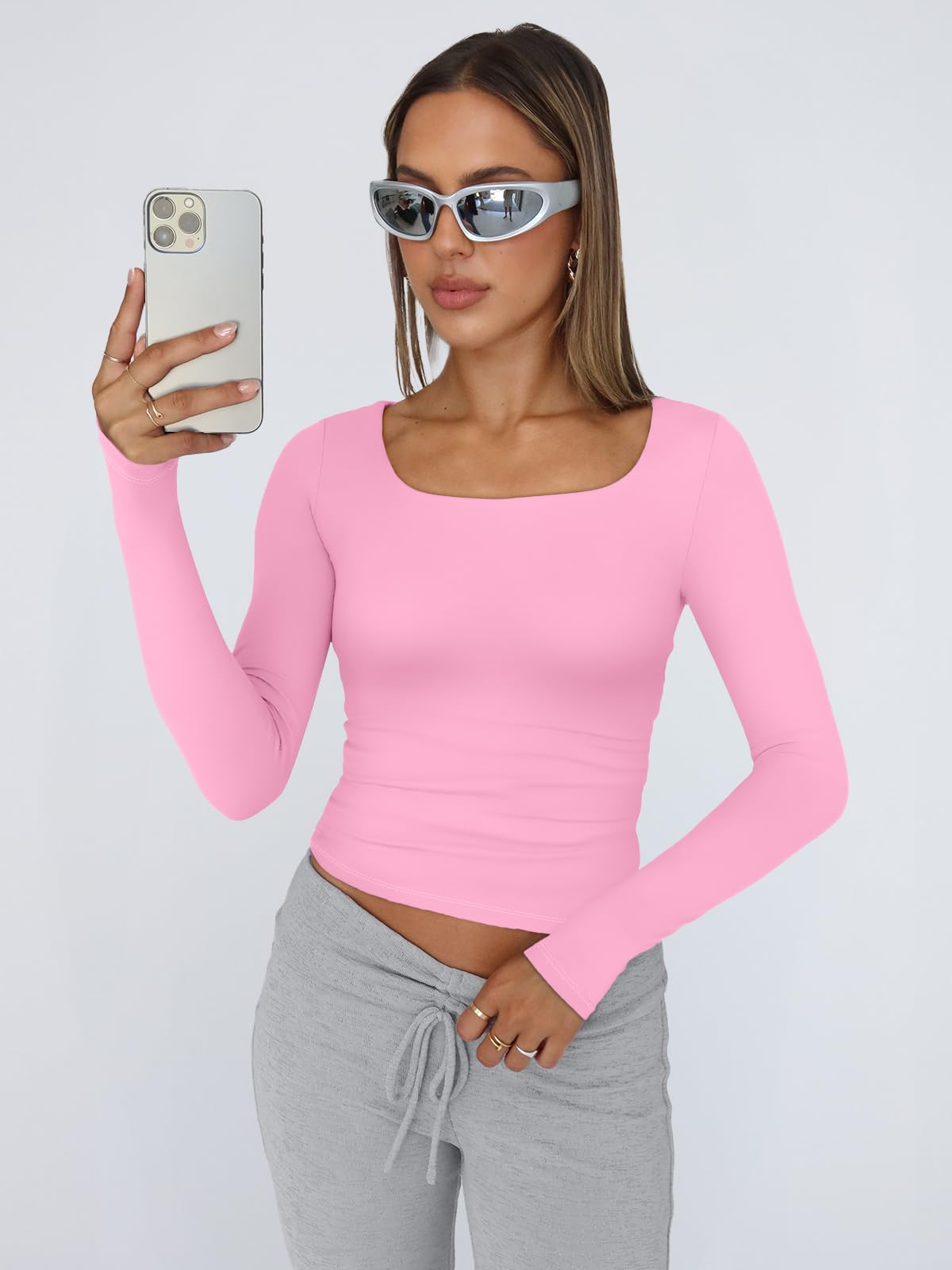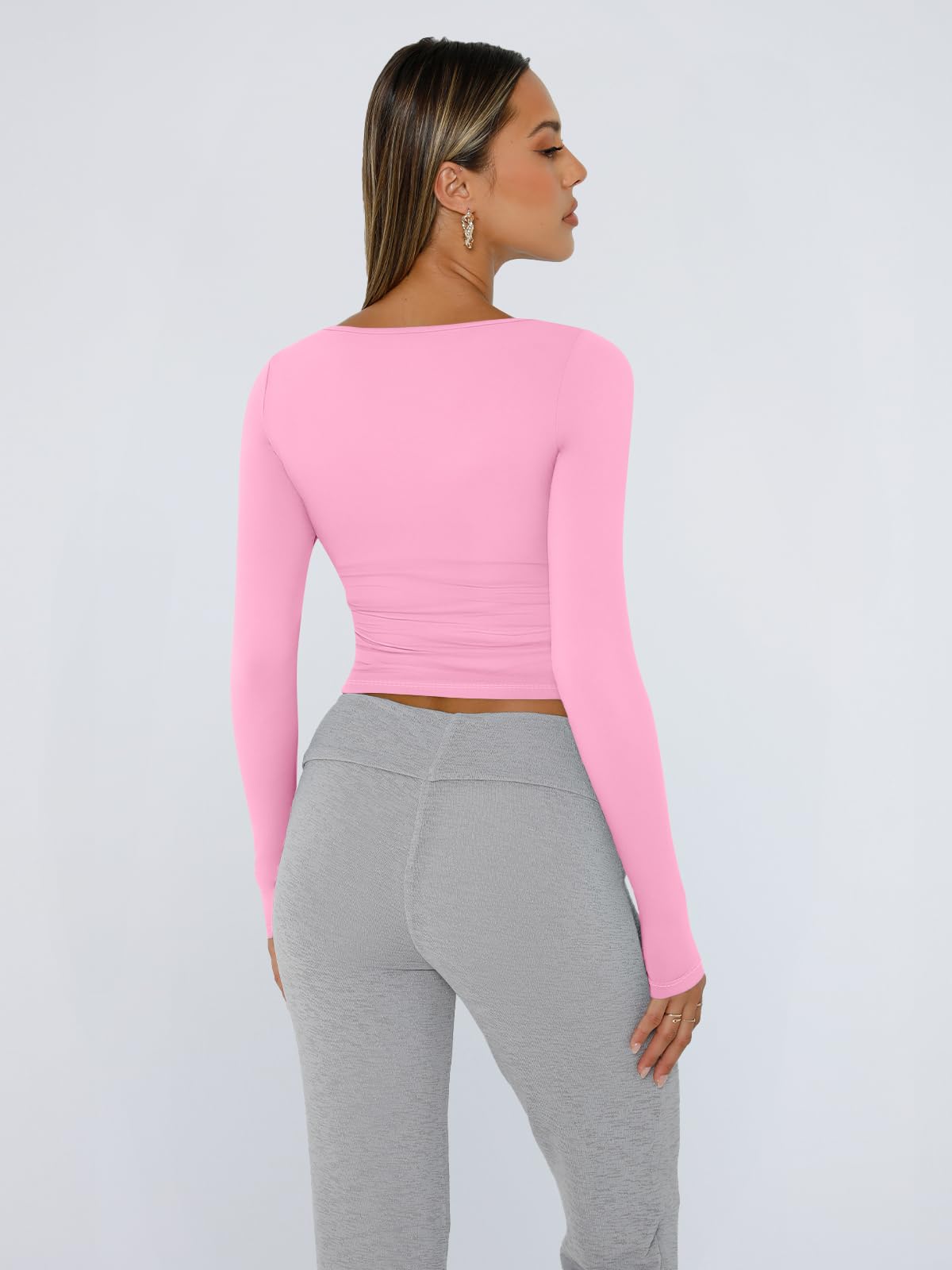 Soft Material: Crafted from a blend of 88% polyester and 12% spandex, this long-sleeve top is lightweight, ultra-soft, and highly stretchable. It offers a second-skin feel, making it an ideal layering piece or standalone top