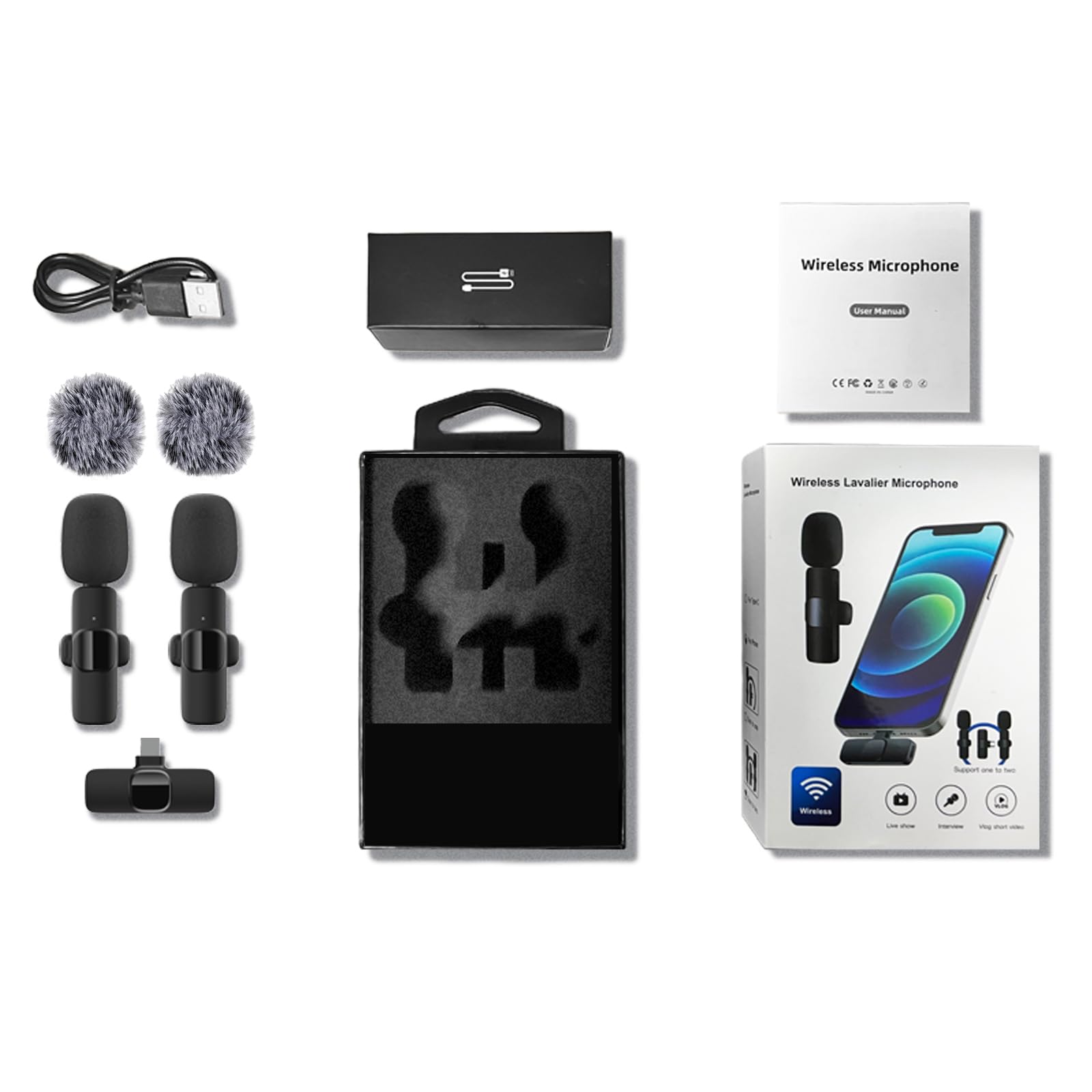 Warranty for the kit: Rechargeable Wireless Microphones with Receiver kit, User Manual, USB-C charging Cable, once purchased, enjoys lifetime VIP customer service, any question, contact us for faster solutions.
