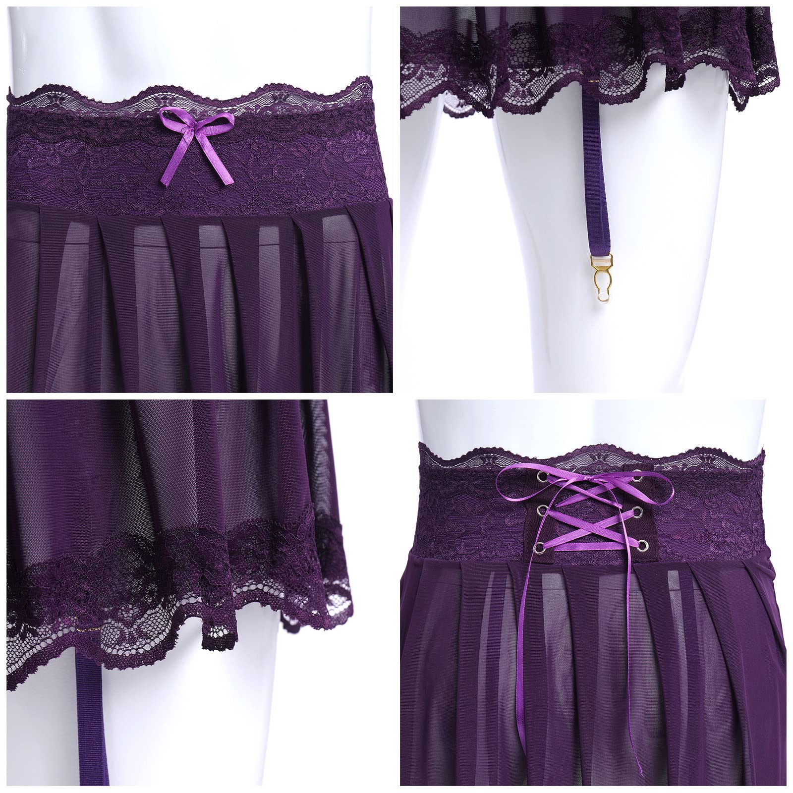 Sissy Mini Skirt for Men : Men Sissy Skirt Crossdress Lingerie Lace Floral Sheer Mesh Tulle Mini Skirts See Through sissy lace hem mini skirt with suspender garter belt, super sissy and girly lingerie for male, as bedroom lingerie, cosplay costume, gag outfit , honeymoon outfit , etc.