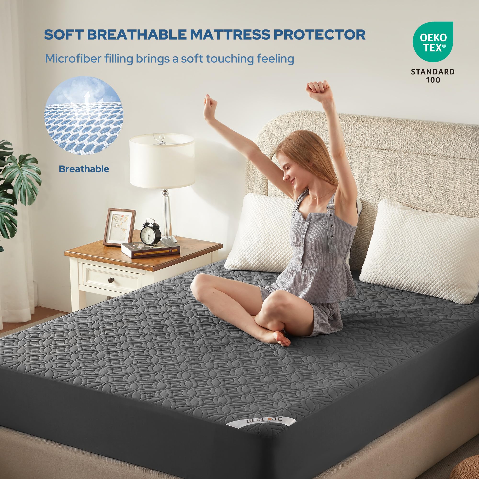 Ultra-Soft & Noiseless: Experience luxuriously soft, breathable comfort. The noiseless queen size mattress protector fabric ensures peaceful sleep, even when you move