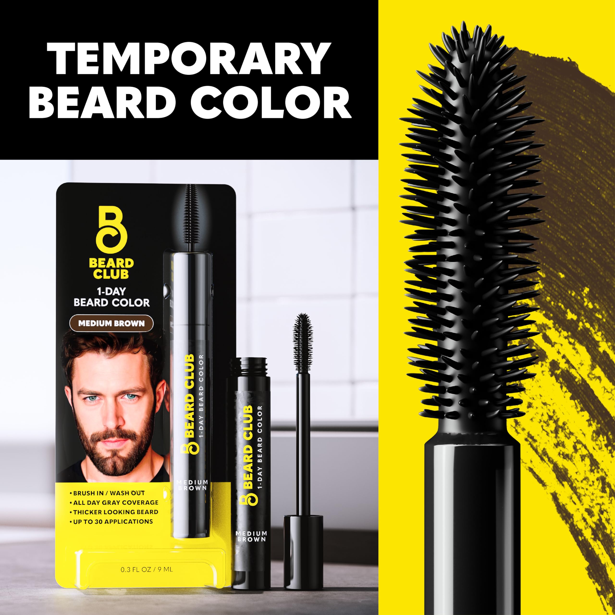 Instant Beard & Brow Color – Brush on mens beard dye to touch up grays & fill in thin, patchy areas in beards, mustaches & brows instantly for a fuller, thicker more natural look that lasts all day