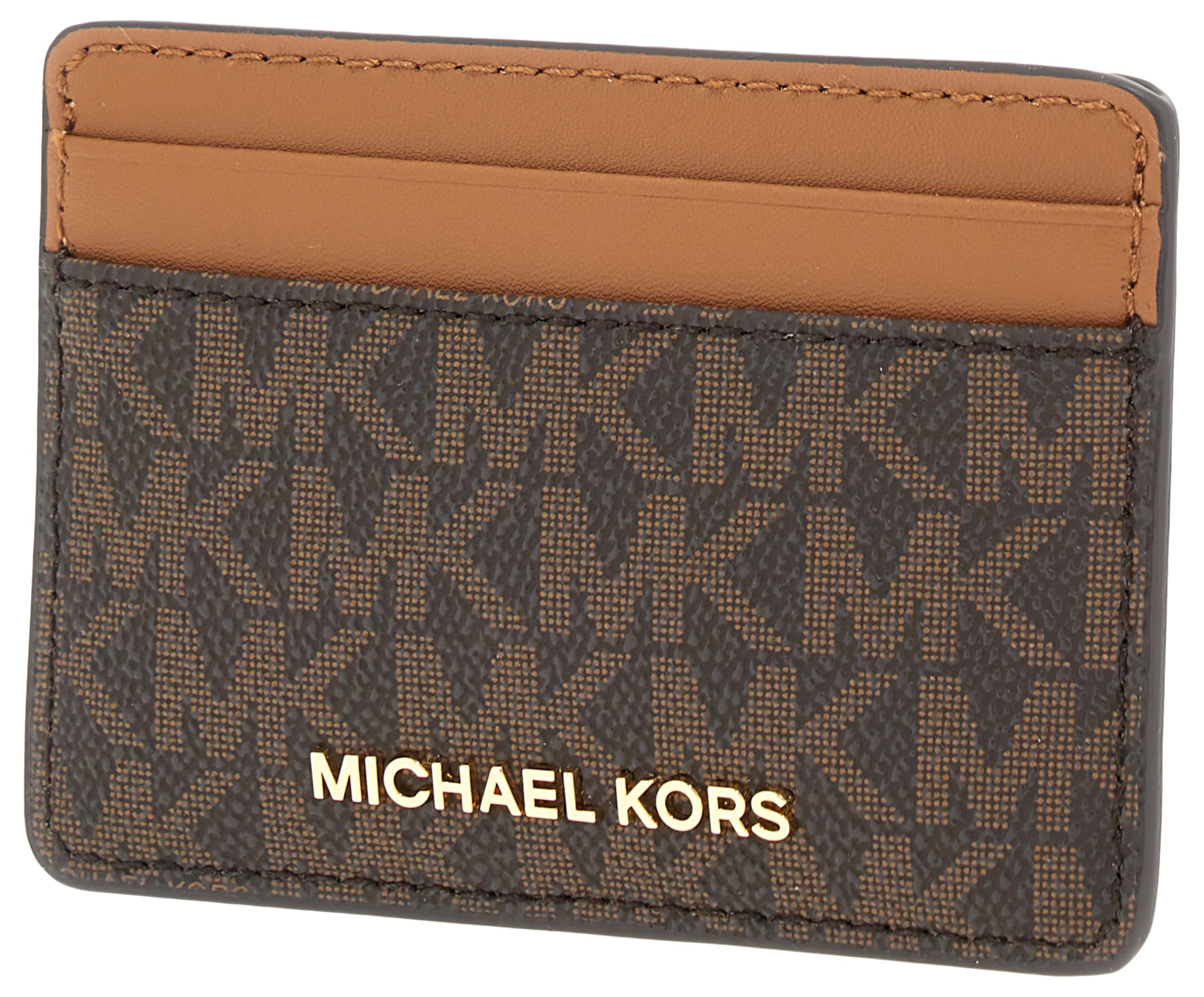 Settle up in style with our sleek Jet Set card case. Crafted from Signature-print canvas and leather, it features four card slots for your most-used cards. Slip it inside the coordinating handbag.