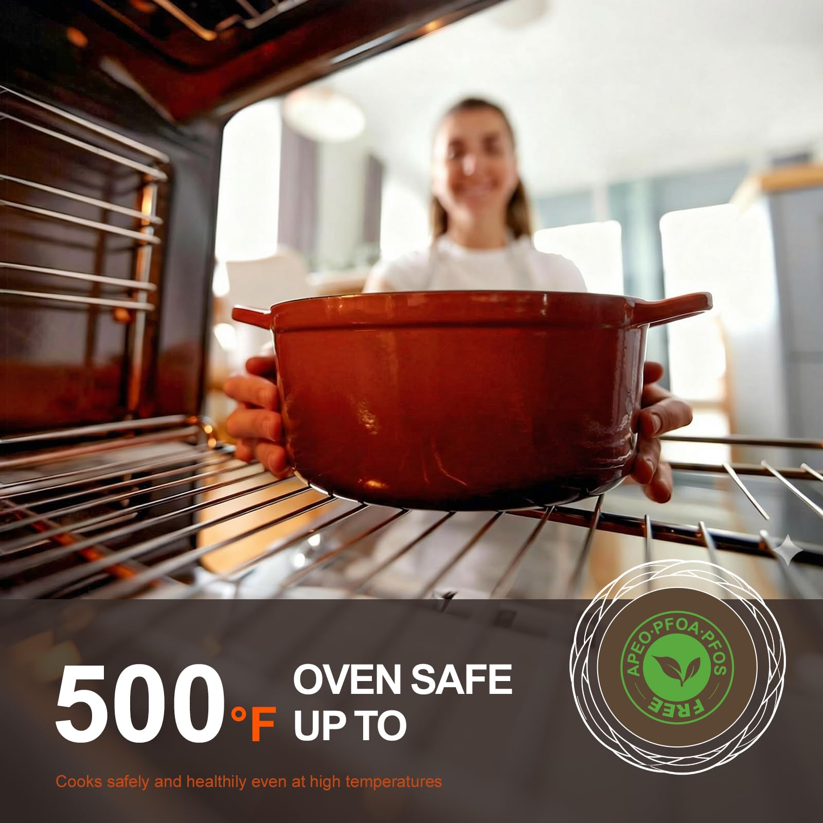 【Effortless Cleaning】Made with food-grade enamel coating, our Dutch oven provides a safe, PFOA- and PFAS-free cooking surface that ensures your dishes stay pure and delicious. The smooth, flat enamel surface not only delivers an exceptional cooking experience but also makes cleaning a breeze. Simply use a soft sponge or cloth to gently wipe away food residue.