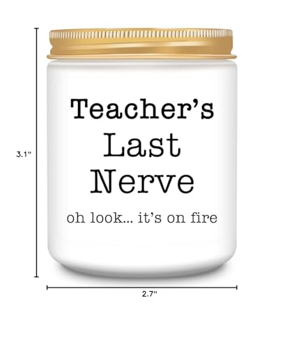 Best Teacher Gifts: The unique candle with saying "Teacher's last nerve oh look... It's on fire". This unique candle is the best gift for teachers from students. These unique gifts are sure to tug at her heartstrings and the teacher will feel your gratitude