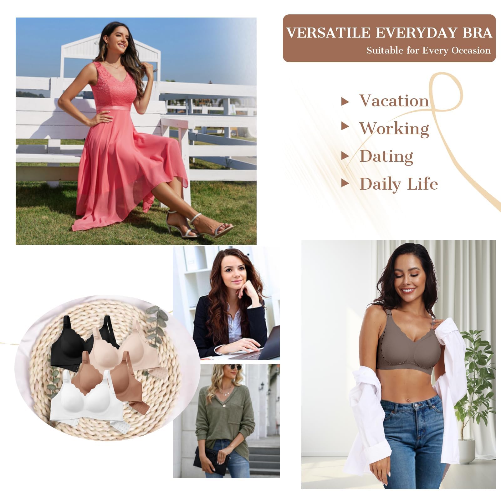 Adjustable Design - The bras feature adjustable shoulder straps and back closures, allowing you to customize the fit to your comfort level. The 4-row back hooks are designed to minimize back fat and provide additional support, ensuring a smooth and flattering silhouette. The widened straps offer effective support and stay put all day without digging into shoulders.