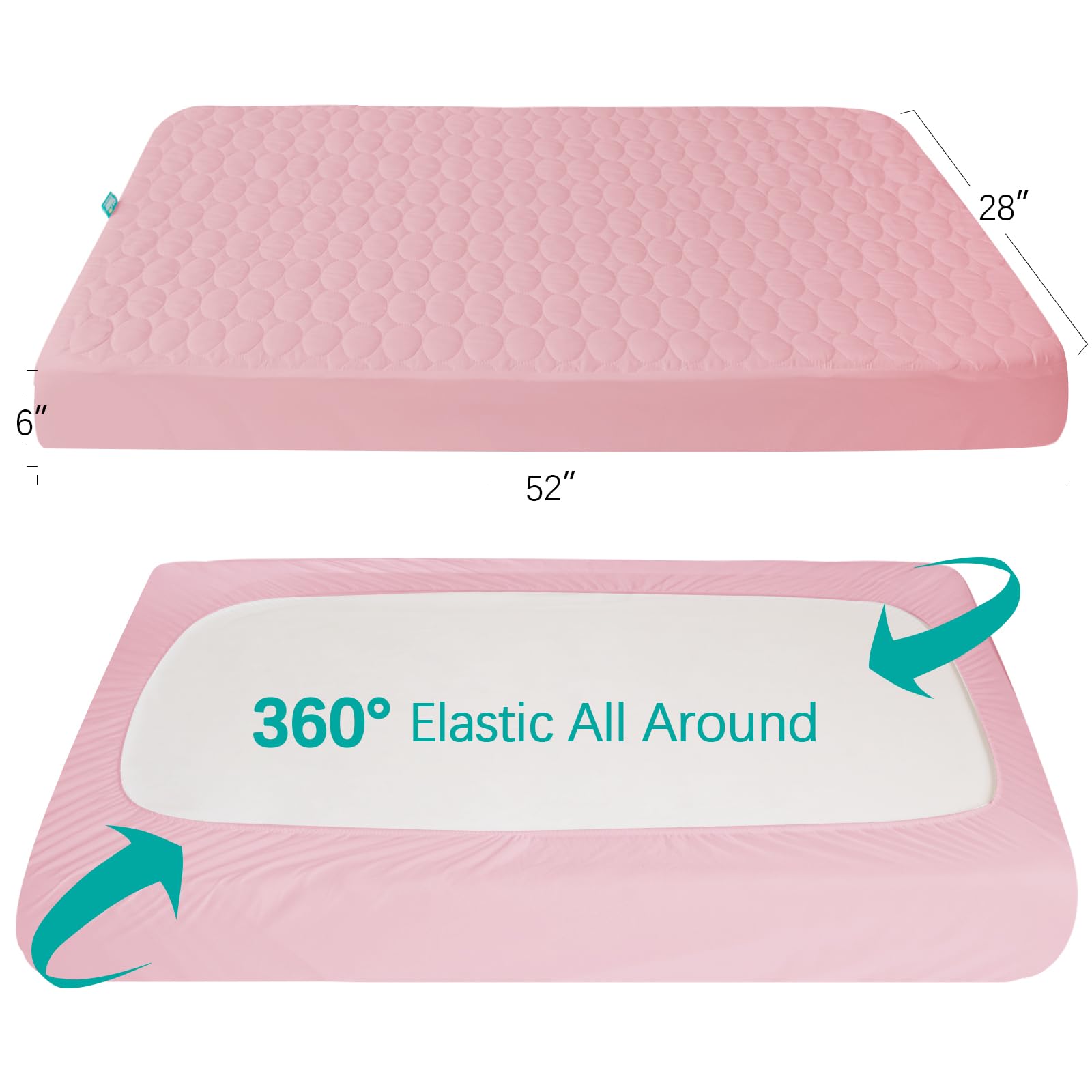 Waterproof & Washable: Our waterproof crib mattress pad stands up well in washing by machine & dry, and in case of frequent accidents, we sweetly pack 2 for you - while one is being washed, the other protects your mattress as usual.
