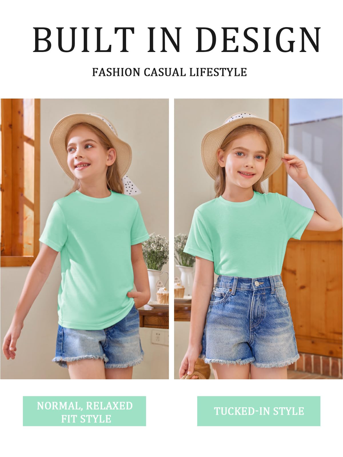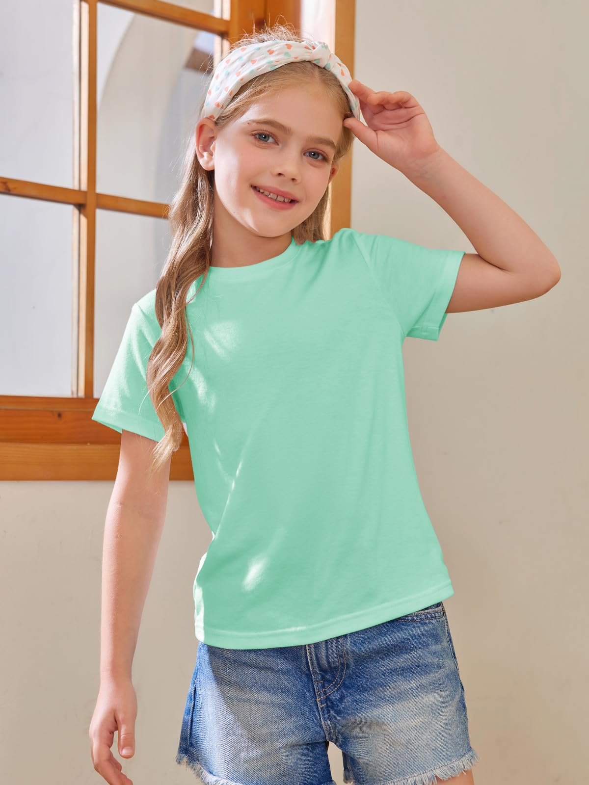 Design: Girls summer t-shirt, casual solid color tee tops, classic round neck and regular length, ,it's a good choice for slim kids.The loose fit provides a comfortable fit for ease of wear and movement. Don't worry about showing your belly when you play