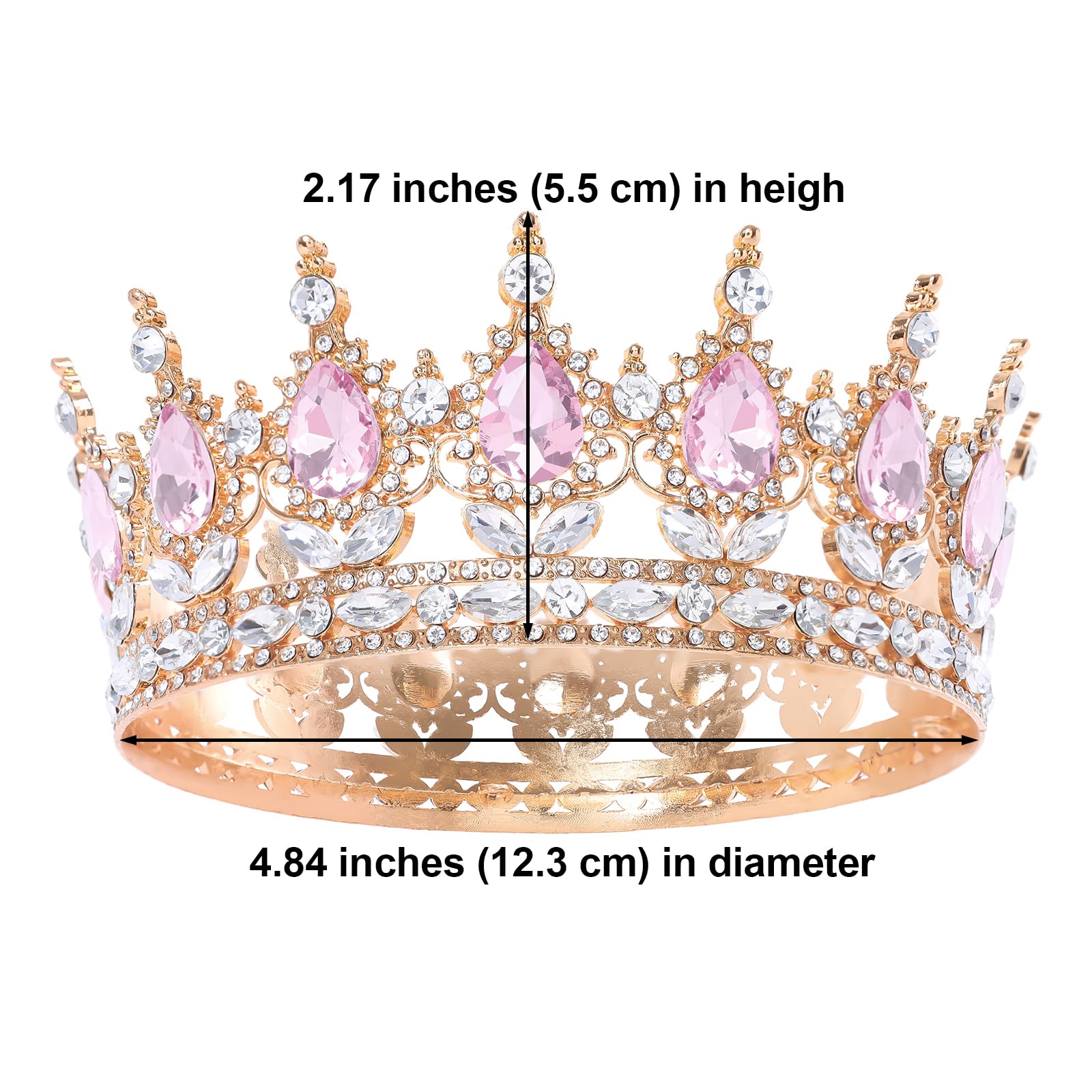 Size and Package: Our tiara crown are suitable for adult women, Diameter about: 4.72 inches, Height about: 2.0 inches, Weight about: 0.344 lb. The package includes clear box and four clips to fix the crown on your head and brings you a long and comfortable wearing experience.