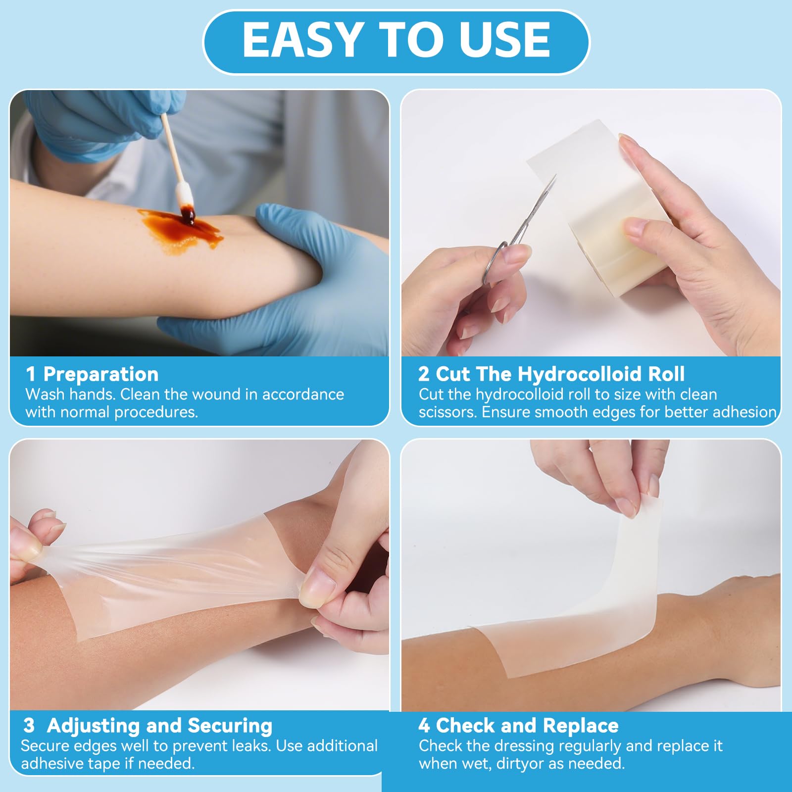 Customizable Application - Hydrocolloid roll can be cut to different sizes and shapes according to the wounds for personalized cover