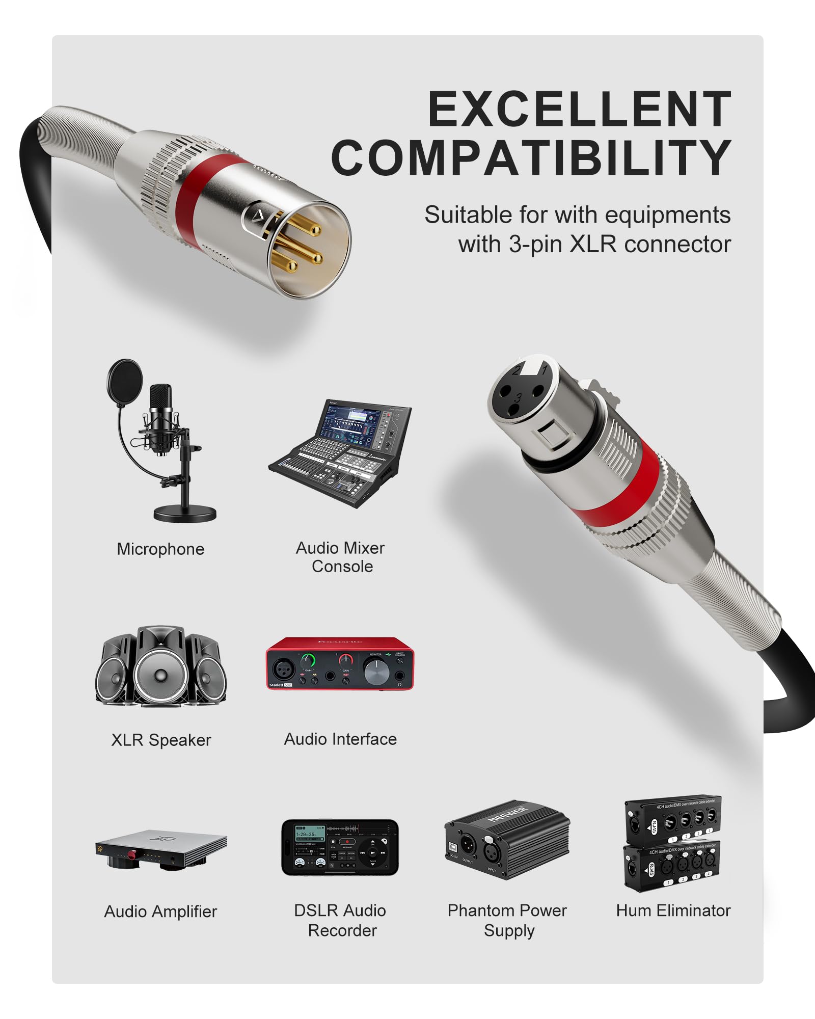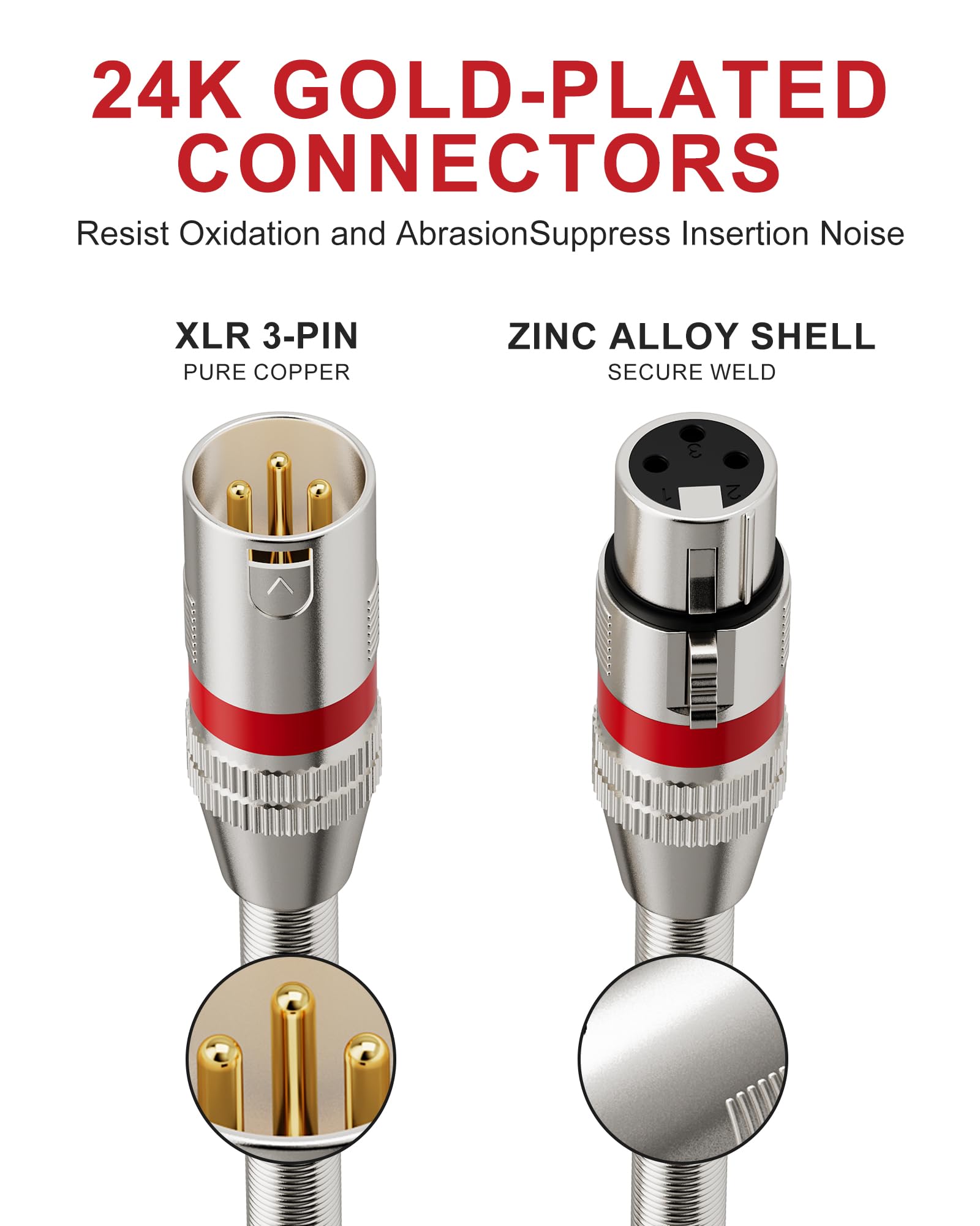 Durable and Flexible Microphone Cable: Made with high-elastic PVC, this xlr to xlr microphone cable is easy to wrap without tangling and resistant to cracking. This xlr mic cord is also highly sturdy and has passed a bend test of more than 500,000 times, which greatly extends its lifespan.