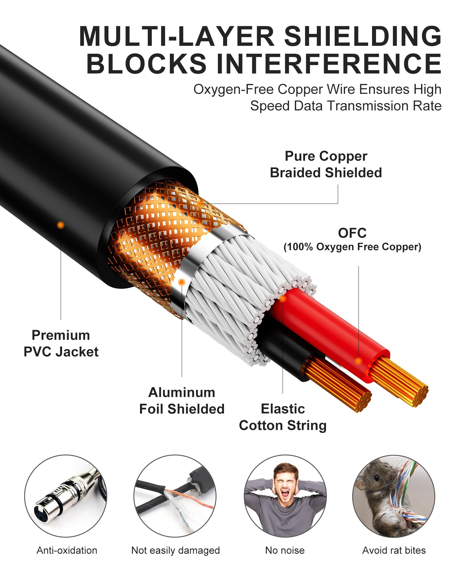 High-Fidelity Sound Quality: This xlr cables 50 ft features oxygen-free copper conductor, pure copper braided shielding, and Al-foil shielding to prevent EMI/RFI interference and eliminate noise. Foboiu xlr cables deliver high-fidelity sound with no background noise, making them ideal for professional recording or live performances using your mic cable.