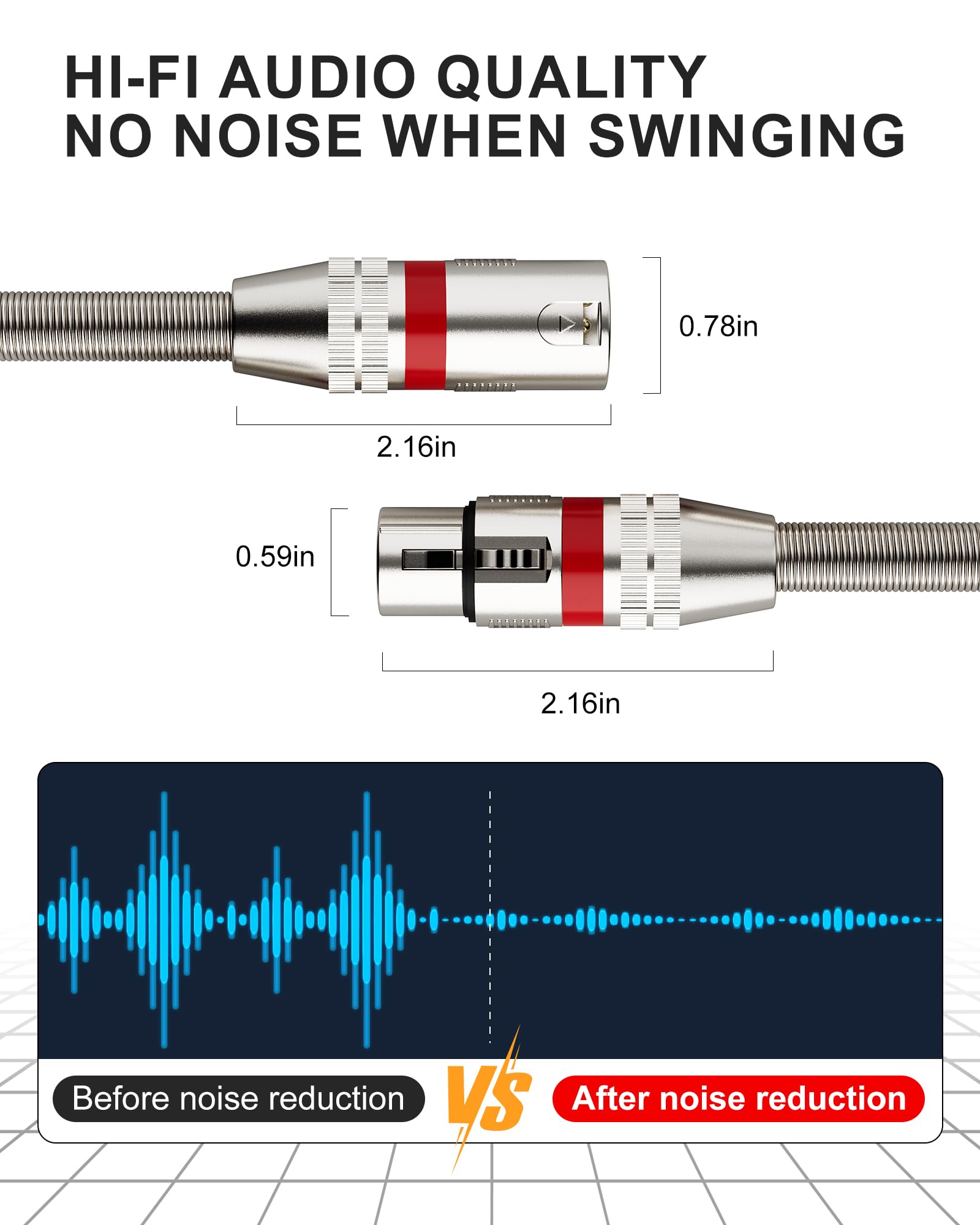High-Precision Heavy-Duty Connectors: The cable xlr to xlr connectors on these xlr cables are housed in sturdy metal, providing a secure connection that maintains signal integrity. The self-locking male to female xlr connector design also provides a stable connection and grips your devices firmly. XLR cable also boasts 24K Gold-Plated XLR 3-pins and good internal soldering connections, ensuring stable signal transmission.