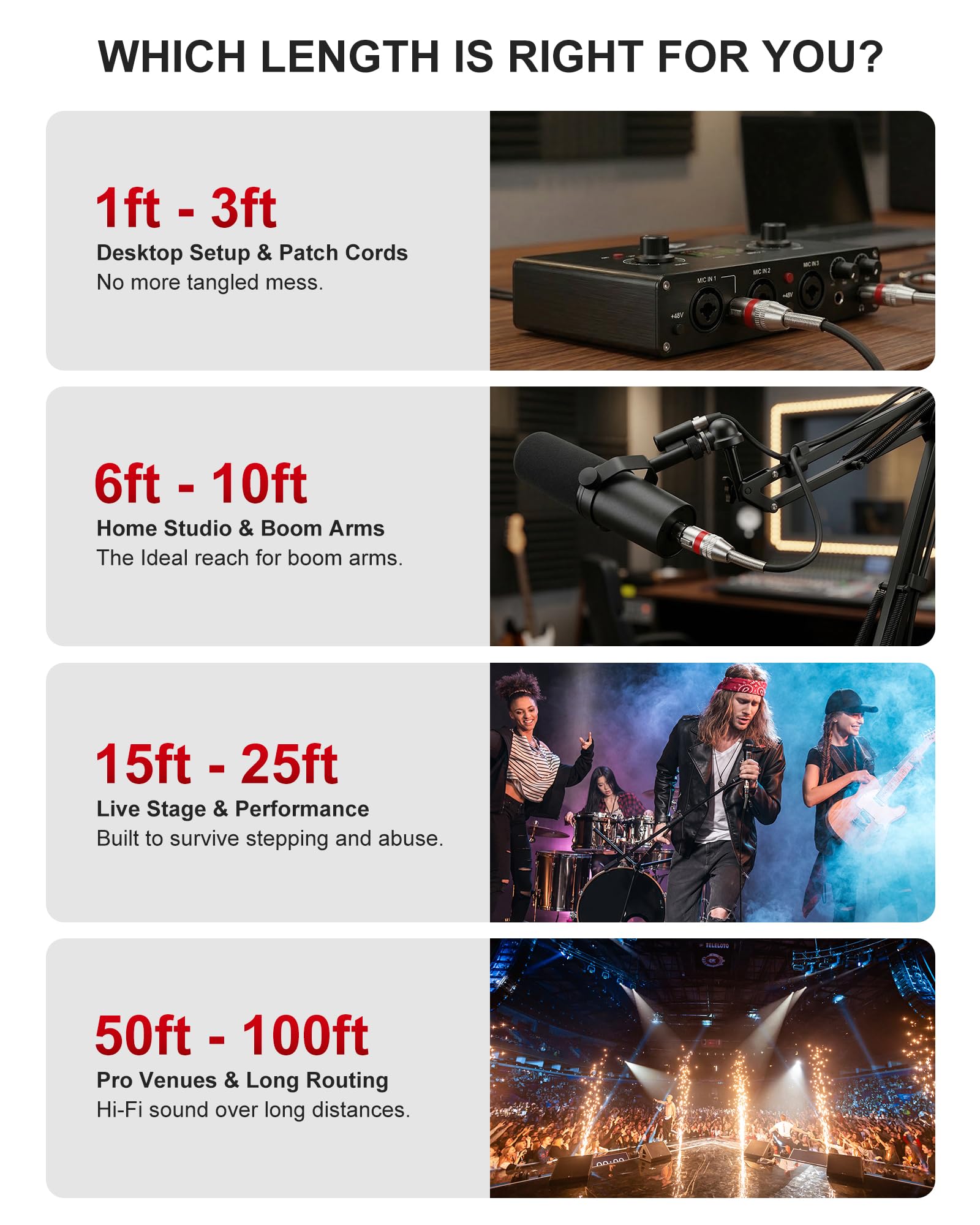 Multi-Layer Shielding for Interference-Free Transmission: These xlr to xlr microphone cable are designed with multi-layer shielding to block out unwanted interference, ensuring that your audio signal cable xlr remains pure and uninterrupted from speaker to podcast mixer or any other audio equipment. Compatible with microphones, audio interfaces, mixers, patch boxes, preamps, speaker systems, and stage lighting; widely used for stage sound, KTV, pro PA, and home theater.