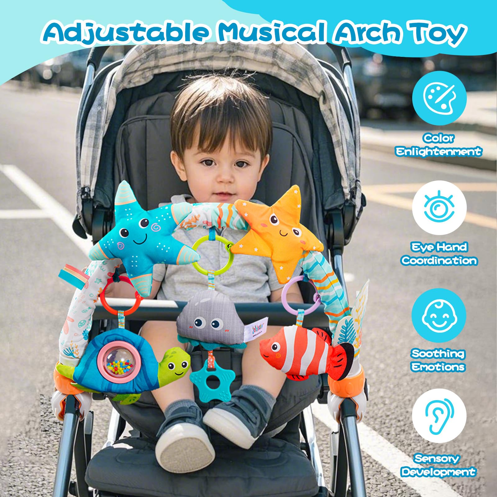 IDEAL GIFT FOR NEW PARENTS: This baby arch hanging toy makes a thoughtful gift for baby showers, birthdays, and holidays like Easter and Christmas. It’s the perfect companion for outdoor strolls, ensuring your little one stays entertained and happy wherever you go!