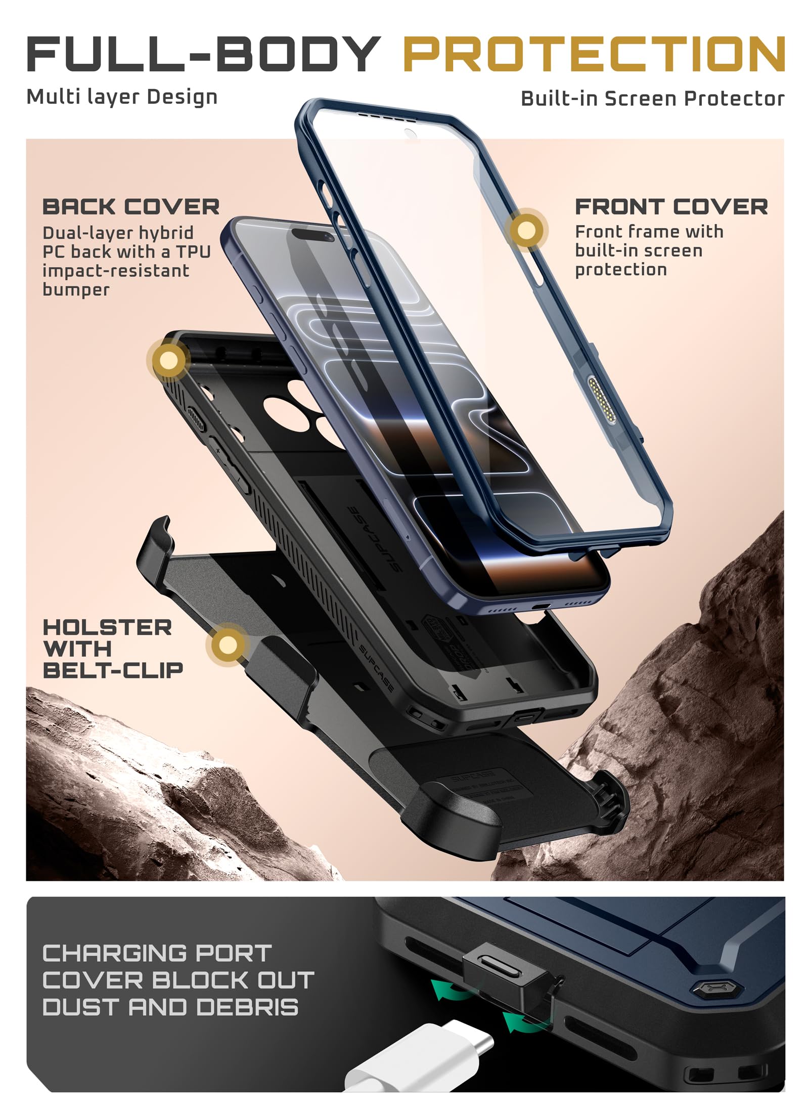 A detachable 360° belt clip is included. The fully rotating holster provides hands-free convenience, while secure side clasps let you snap the case on and off effortlessly. Ready for work, travel, and outdoor adventures.