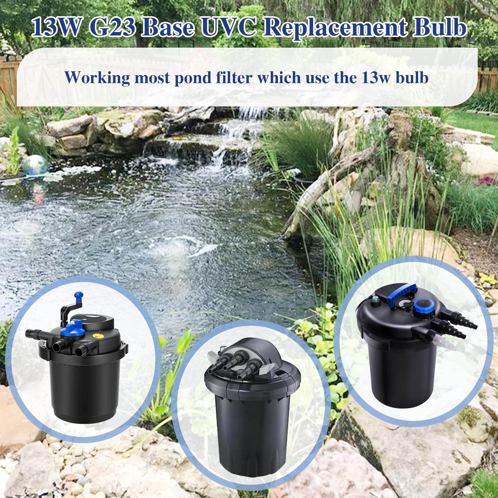 【Wide Compatibility】Designed as a universal replacement, this UV bulb is compatible with various pond clarifier brands, AQUATOP, Jebo, Jebao, Tetra, SUNSUN, ViaAqua, Grech, etc.