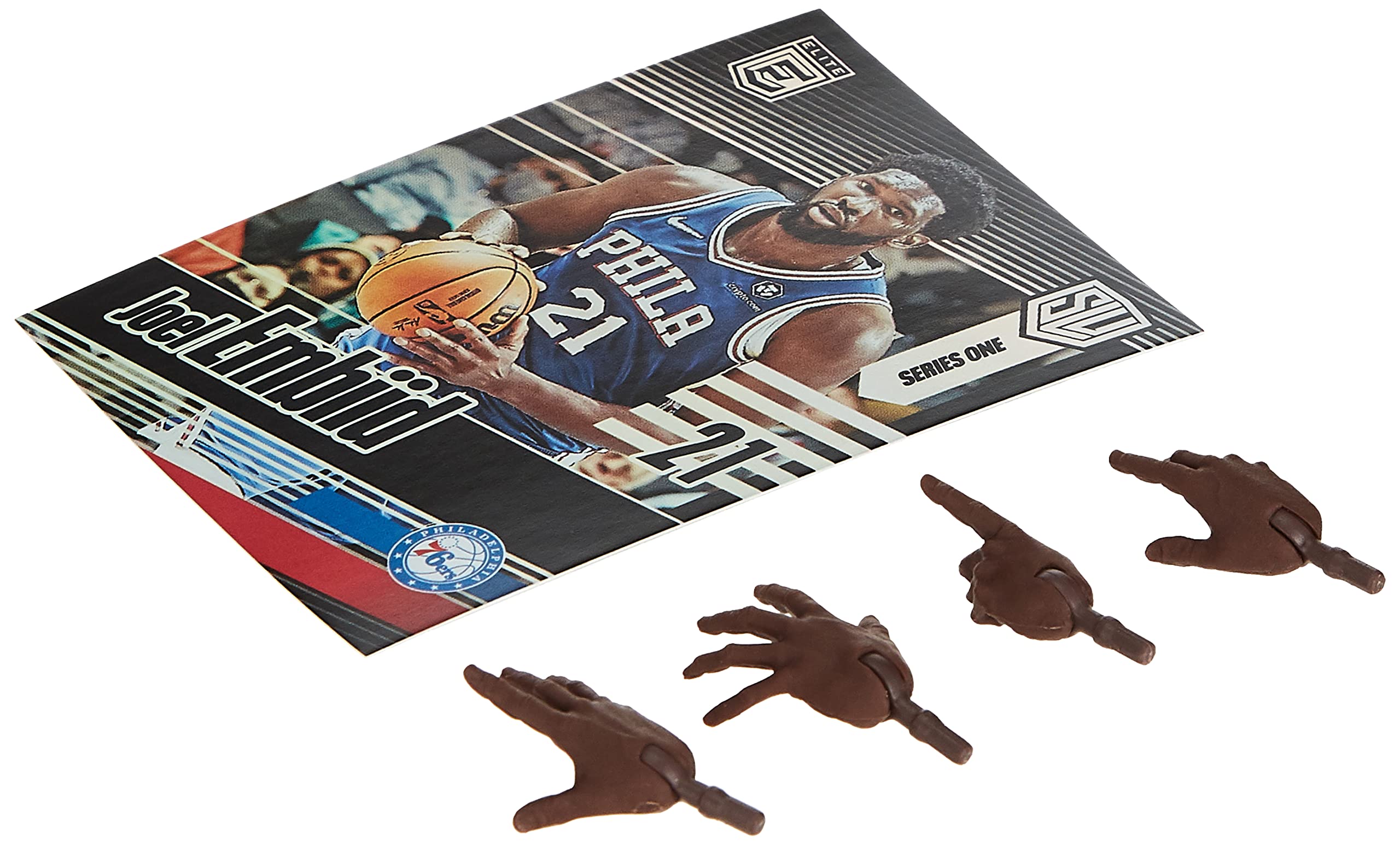 The starting line is back into the innovative NBA series action figures. Premium design and detail are 6" sized sports action figure. The NBA action figure includes additional hand parts, flight stands and a 6" size exclusive Panini Basketball Trading Card from the Starting Lineup. Released by Kenner in 1988, the Starting Lineup Sports Action Figure has been a popular fan of sports and has been offering sports figures based on your favorite pro player. The 4-inch action figure comes in a variety of poses and comes with a sports trading card. With modern design and detail, photo-realistic technology and premium range of motion, the latest Starting Lineup action figure reproduces your favorite player with extremely accurate detail and familiar poses that are sure to delight fans. The Starting Line Up Basketball Action Figure with Exclusive NBA Trading Card is the perfect sports gift for the ultimate fan. Other NBA player action figures available (each sold separately) The Starting Lineup Series 1 Joel Embiid NBA action figure is now wearing the iconic Philadelphia 76ers edition uniform. Multiple range of motion allows for dramatic poses. We also wear the Under Armour Embide 1 shoe! HASBRO, KENNER, and STARTING LINEUP and all related trademarks and logos are trademarks of Hasbro Inc., © 2022 Hasbro. © 2022 the National Basketball Players Association. All rights reserved. ©2022 NBA Properties, Inc. All rights reserved.The Swoosh design and Jumpman design are trademarks of NIKE, Inc. Under Armour and logos used under authority. orization. ©2020 Under Armour, Inc. 2021-22 PANINI - DONRUSS BASKETBALL© 2022 Panini America, Inc. Produced in the USA. © 2022 NBA Properties, Inc. © 2022 the National Basketball Players Association. All rights reserved.