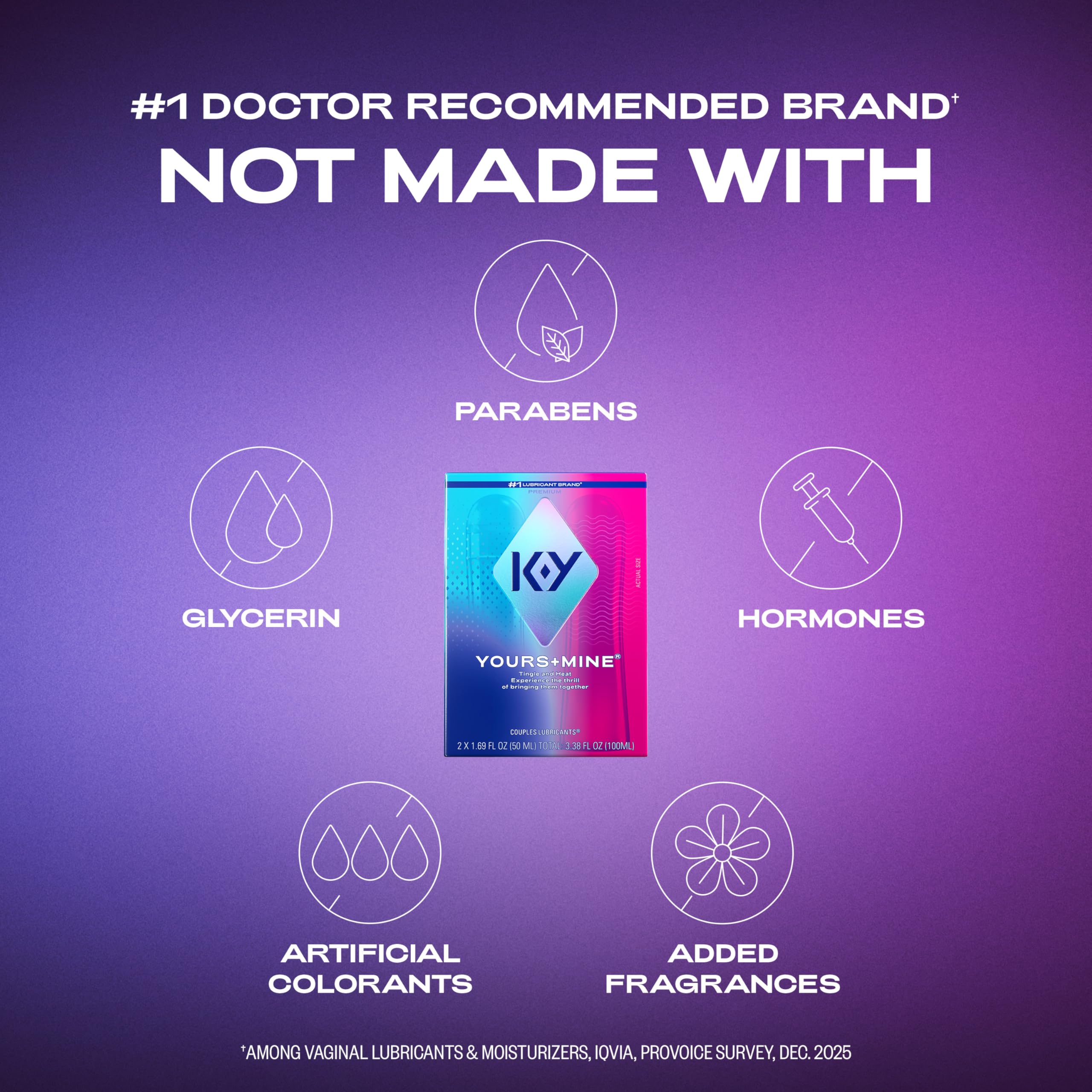 PERSONAL LUBE: KY Yours + Mine couples lube is designed to help keep the excitement coming with two personal lubricants that combine to help ignite much more than conversation; new formula is not made with hormones or artificial colorants