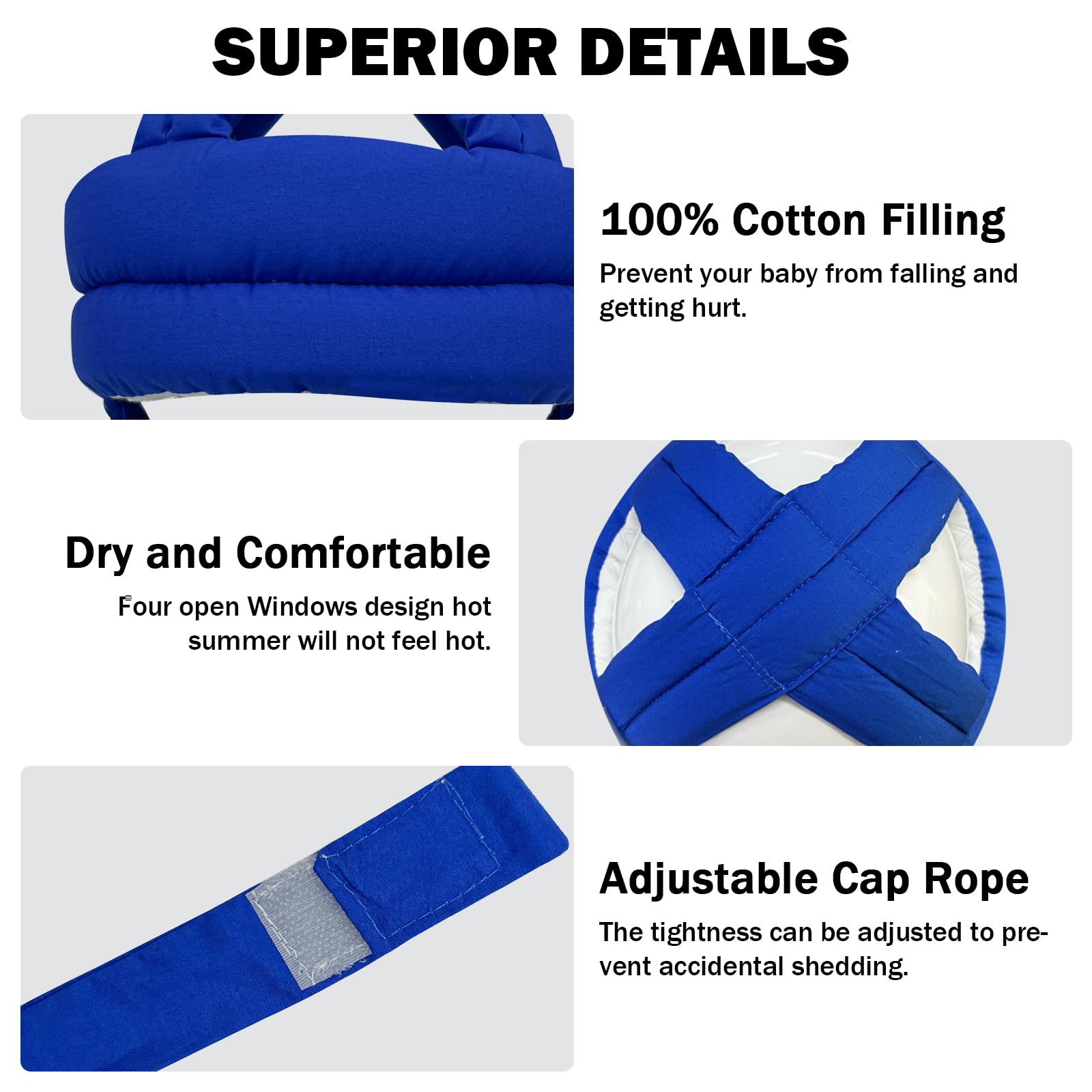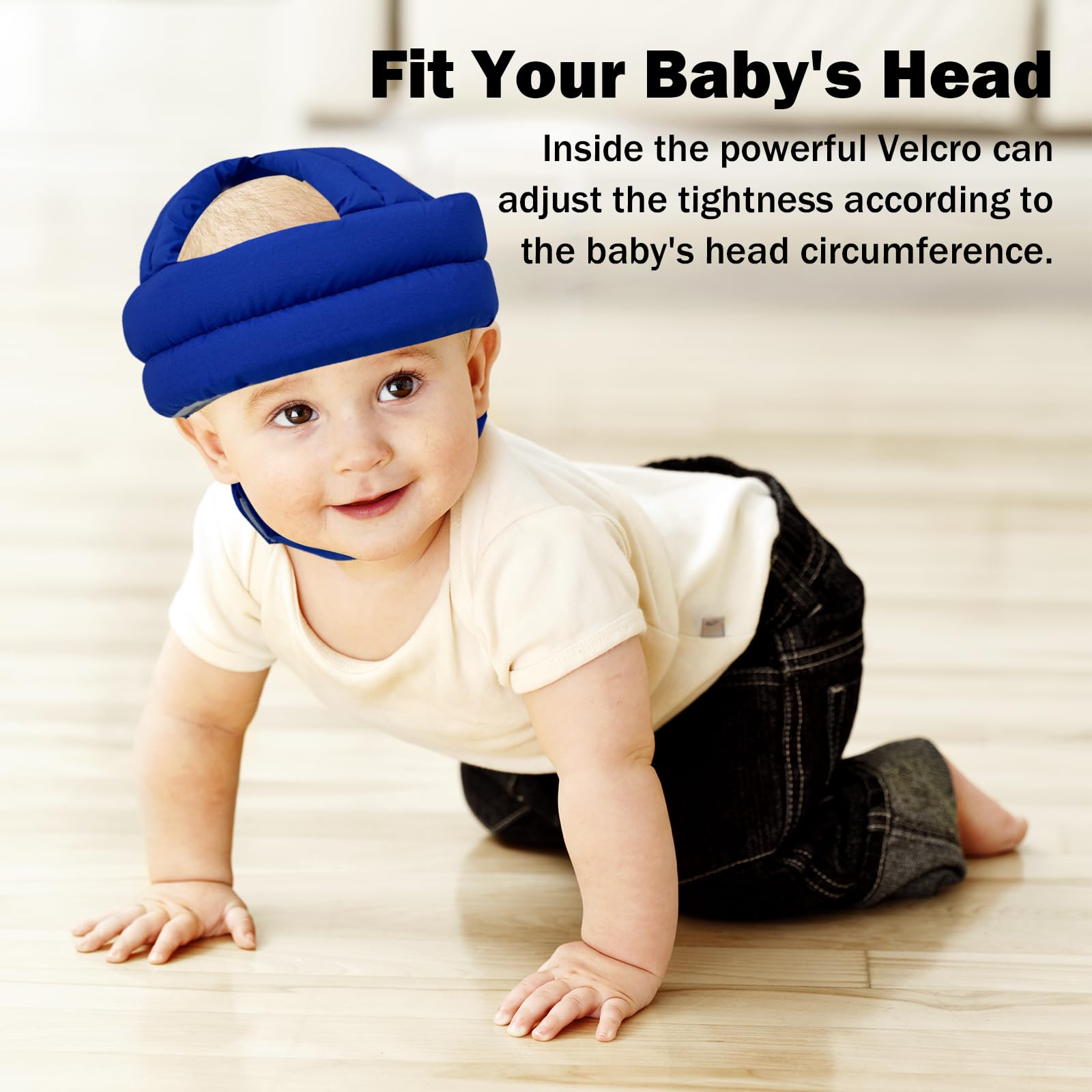 【Adjustable & Secure Fit】 It'll fit the baby's head with a circumference of 16.2-20 inches for a snug yet comfortable fit. The secure buckle prevents slipping, while breathable padding adapts to any head shape—ideal for growing infants needing reliable protection.