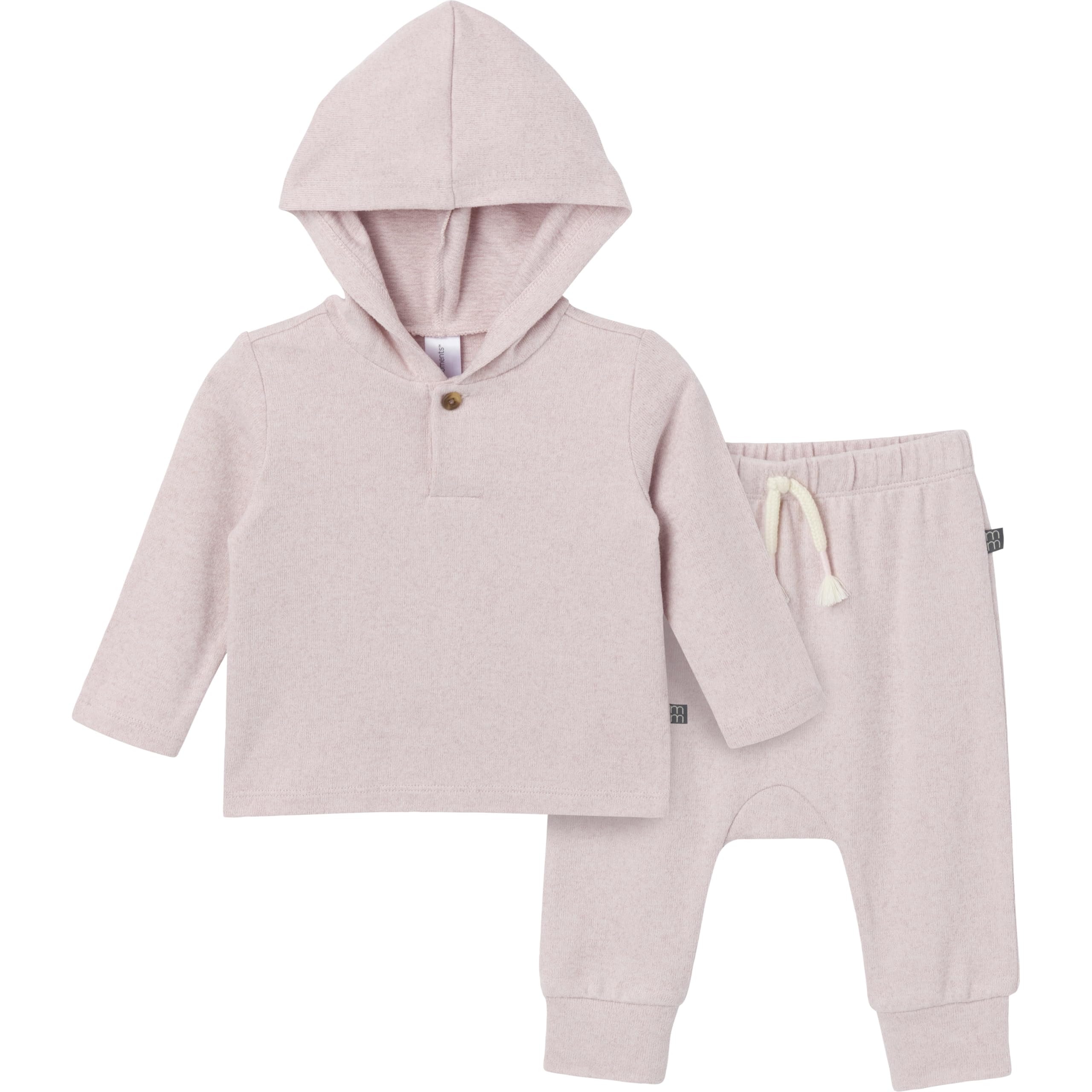 Description Keep your little one snug and stylish with our adorable baby hoodie and pants set! Made from plush fabric, this set offers a cozy feel that's perfect for chilly days. The loose, stretchy fit makes layering effortless, while the hood provides extra warmth and comfort. With faux wood buttons on the hoodie adding a sweet touch, this set is as cute as it is practical. The comfort-stretch waistband and ankles on the pants ensure a comfortable and flexible fit, allowing them to move and play. Whether relaxing at home or out for a fun playdate, this set is sure to become a favorite all season long.