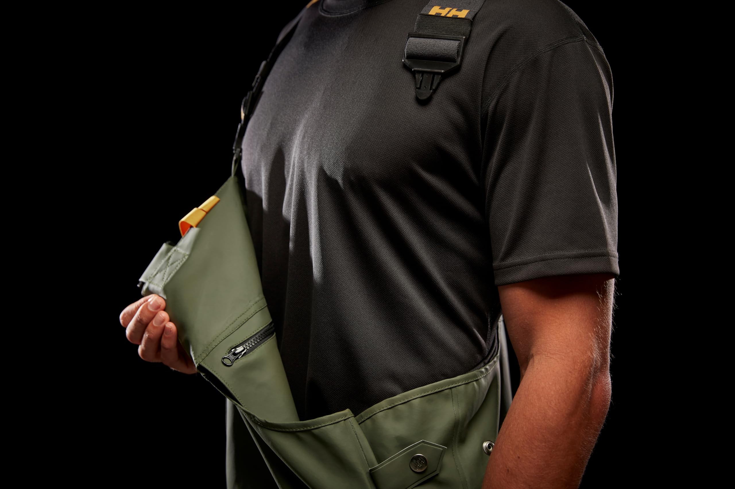 Sustainable Comfort Features: Experience superior comfort with adjustable elastic suspenders and a snap-adjustable waist in these fishing bibs for men. An internal zippered chest pocket ensures valuables remain secure during demanding outdoor activities