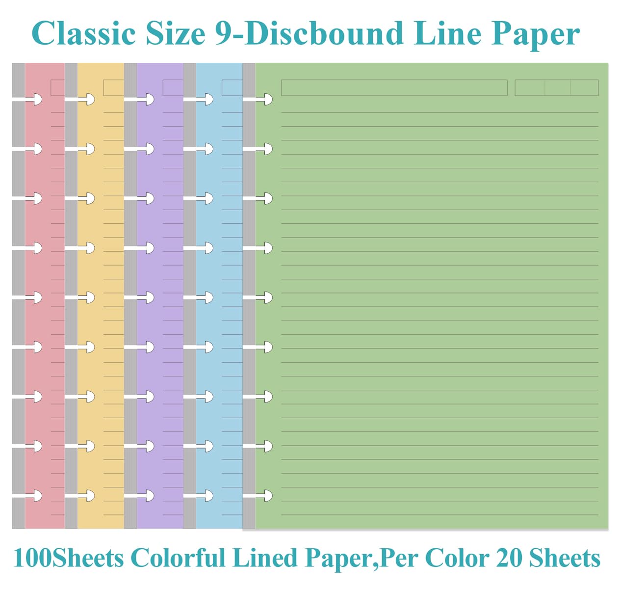 This line refill size of 7" x 9.25" , per color 20 sheets, total in 100 sheets/200 pages for 200 days, improve your productivity with this daily organizer. Loose leaf paper perfectly fits 9-Disc Classic Happy Planners, NOTIQ Midi 9-Disc (L2), Inkwell Press such as The Happy Planners, ARC by Staples, Levenger Circa, TUL, etc. Refill paper is used to high quality 100gsm pure white premium acid-free paper, so you can confidently use most pens, pencils, and markers without ghosting and bleed-through. This refill line paper for school notes, meeting notes, or any form of writing, our Ruled Sheets have subtle gray lines spaced by a quarter inch.